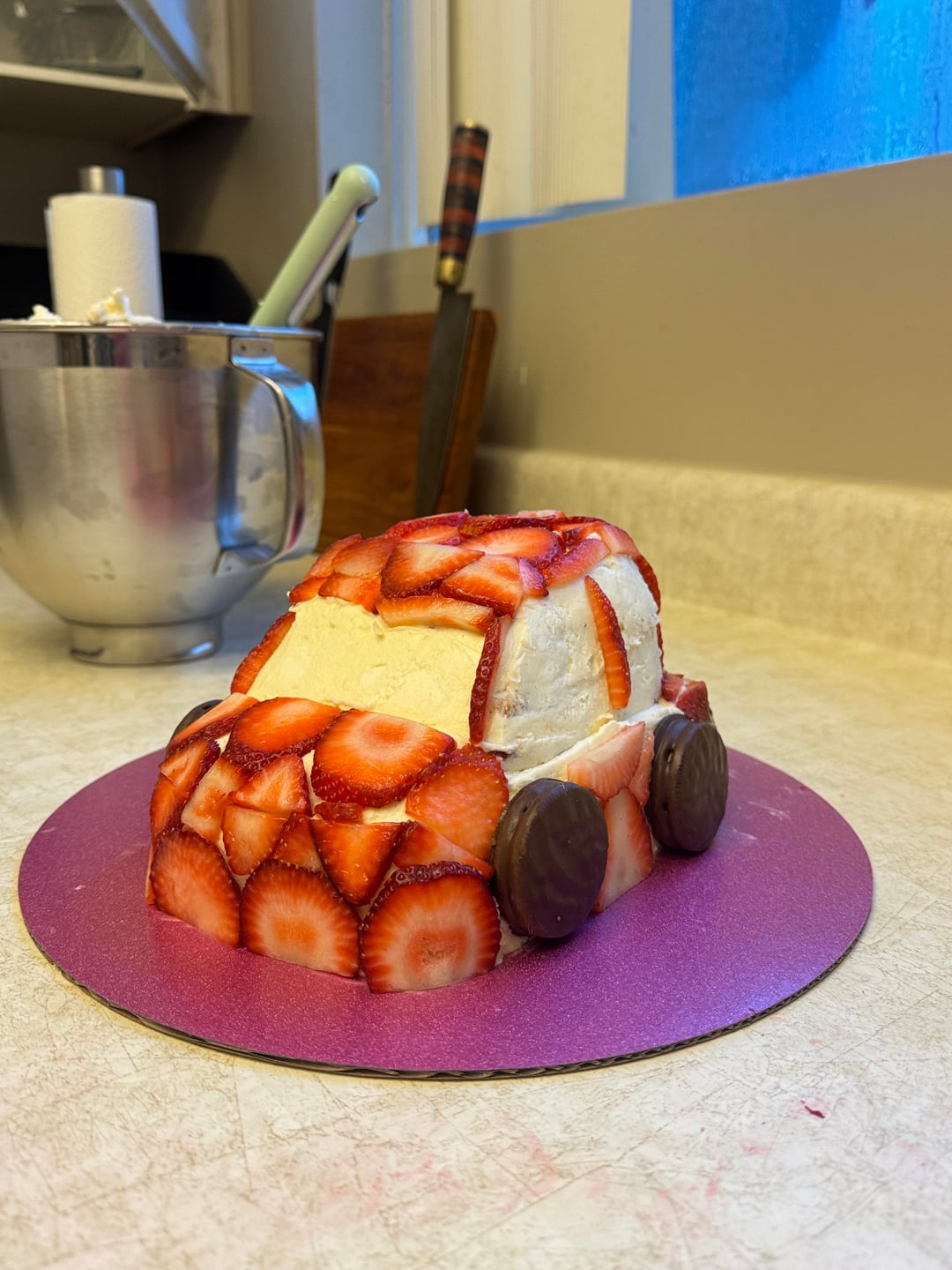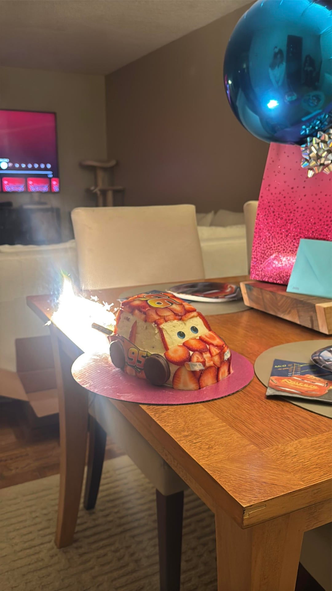 It is adorable! What a great job. It takes way more creativity to do this with sliced fruit! I made lightning McQueen for my daughter about 8 years ago and I had to use so much gross red fondant ☺️