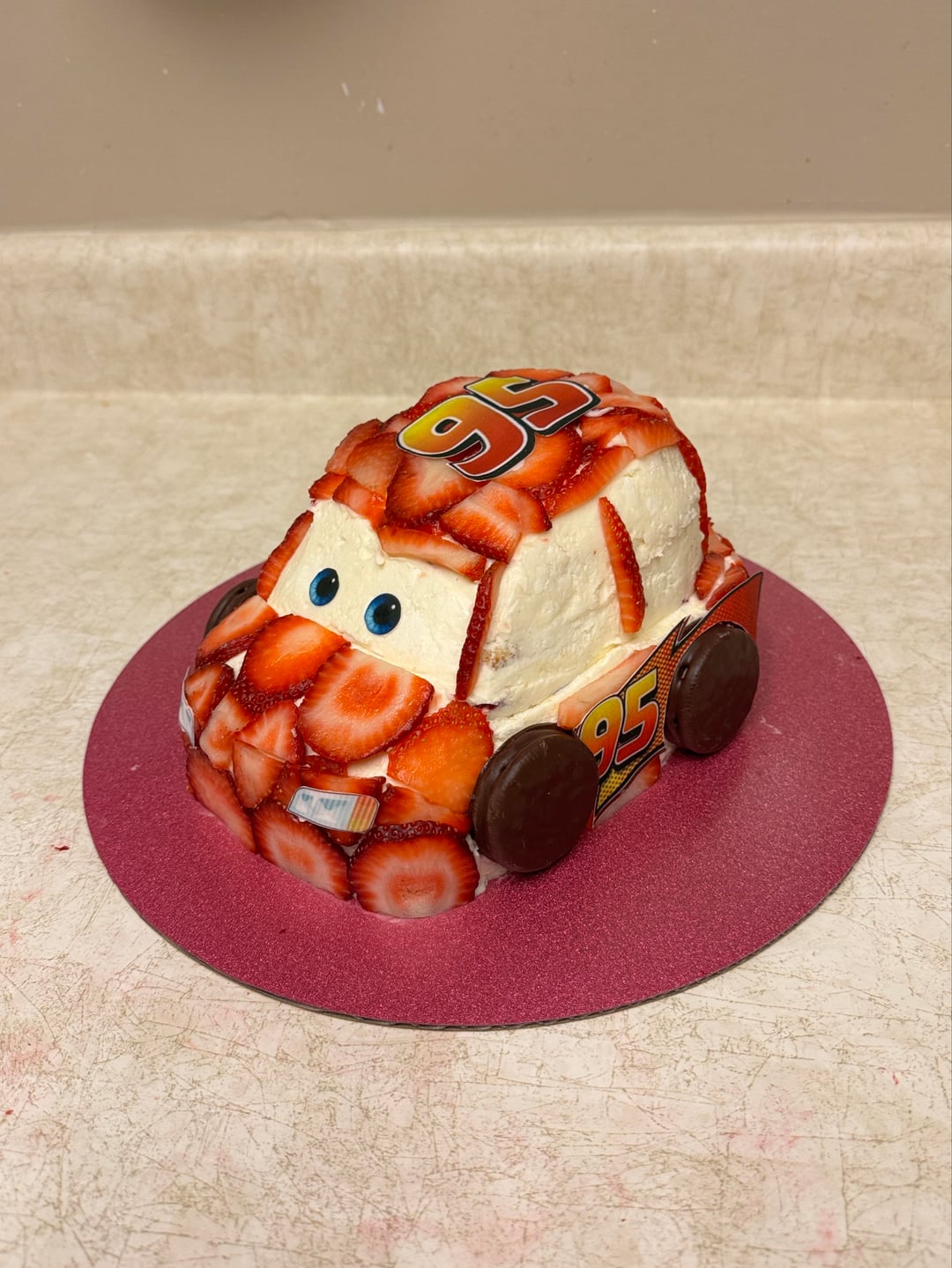 I love it! I think using the strawberries was a very cool and unique way to bring the character to life. Instantly recognizable as Lightning McQueen!