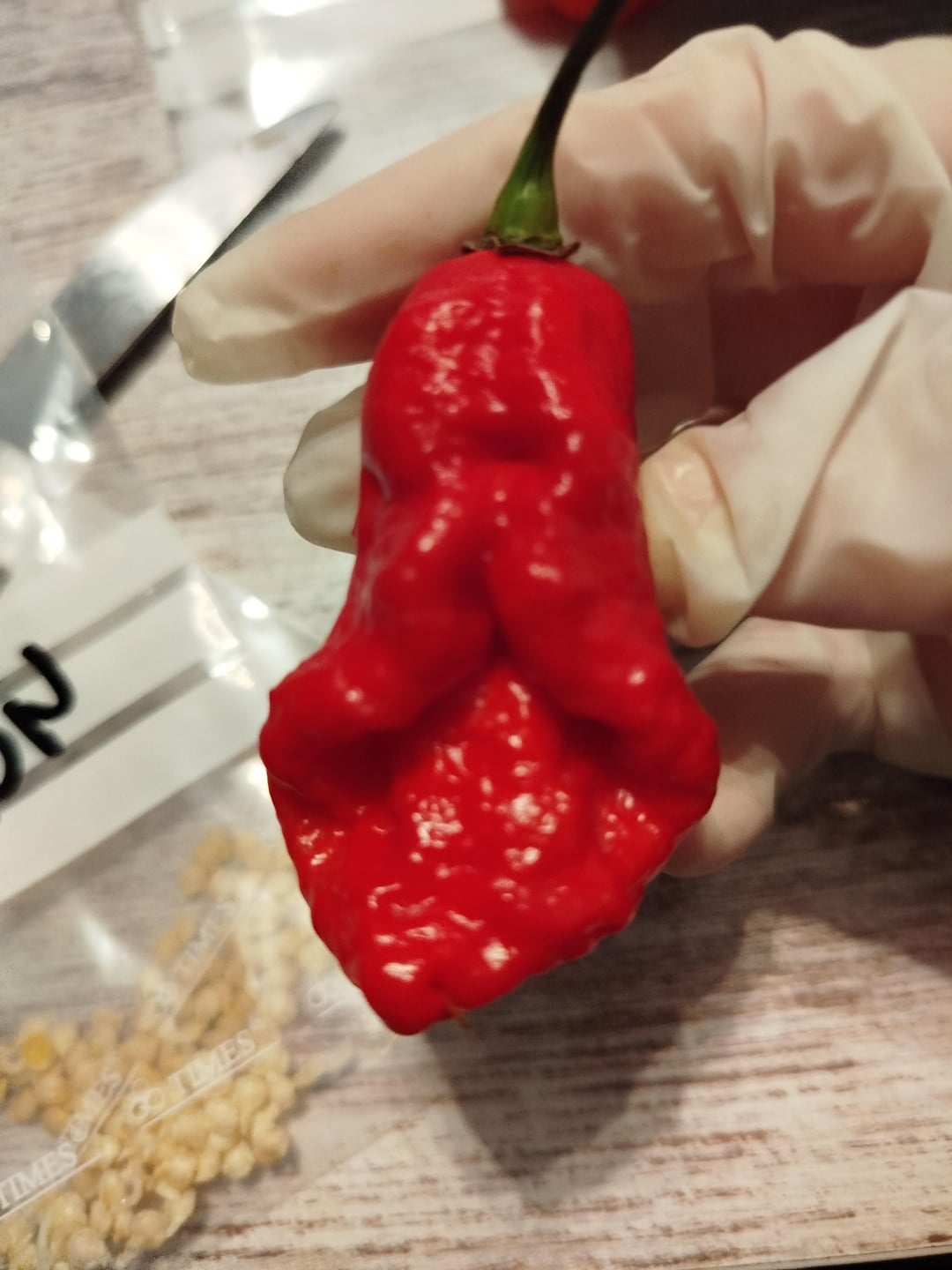 First one looks like a Bishop’s Crown (gloves off). Last one looks like a Carolina Reaper (gloves on).