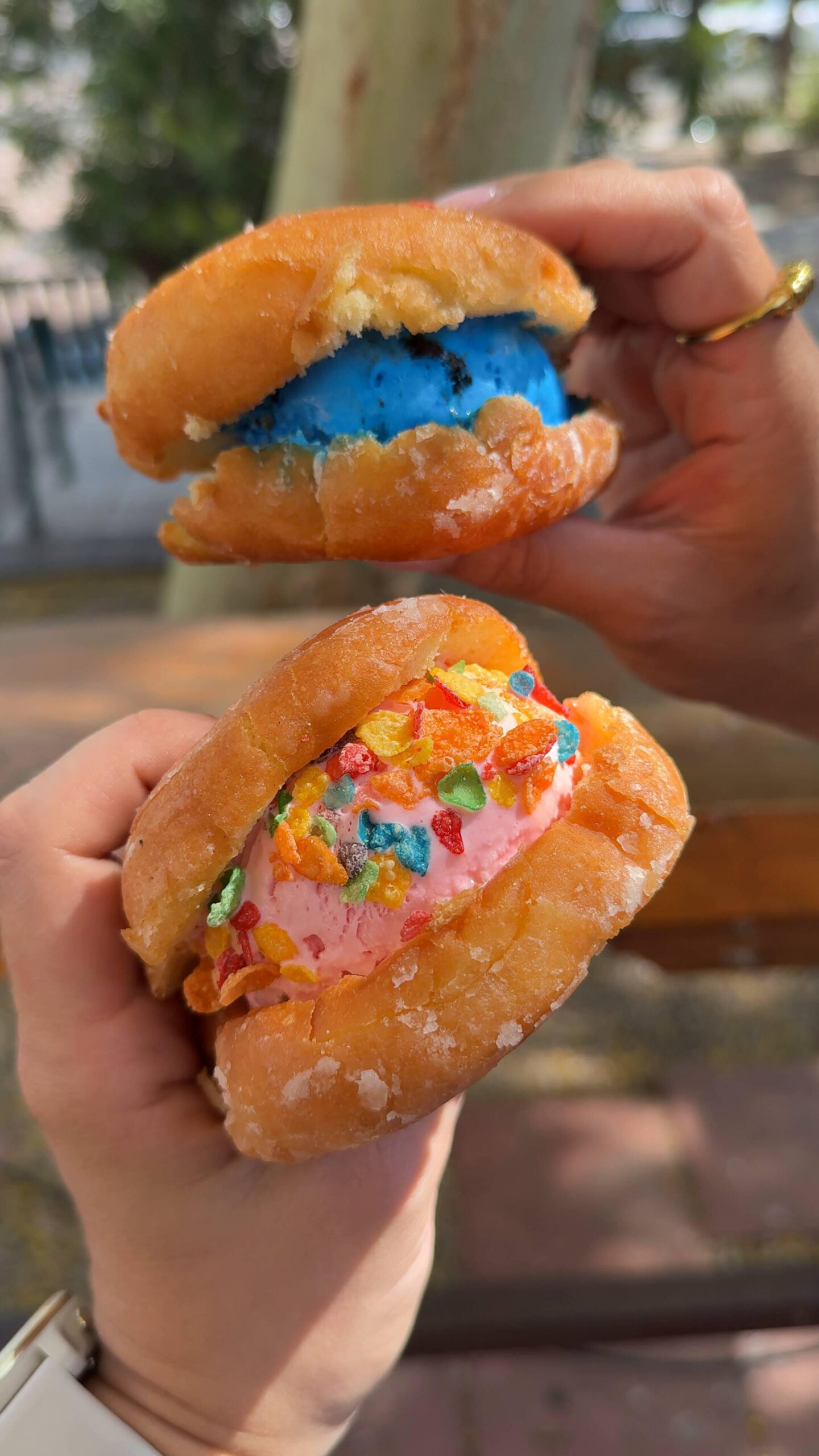 Strawberry with Fruity Pebbles and Cookie Monster ice cream dough-melts from Novel Ice Cream in Phoenix