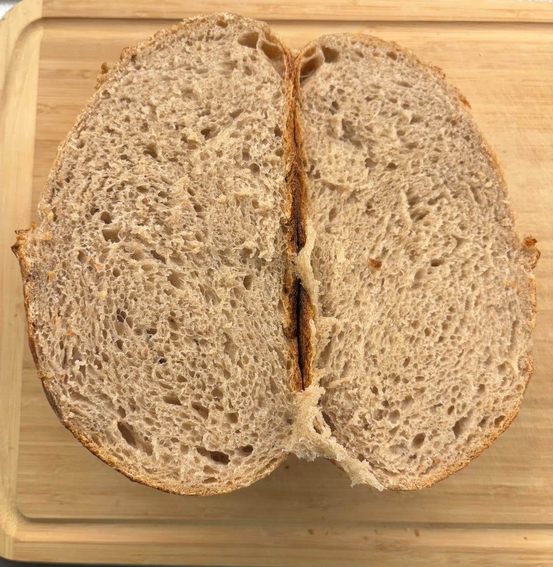 Thanks TheBreadCode YouTube the lessons and for my coworker for giving me some starter to use. Initially I tried to make my own starter, but it didn’t rise the dough at all so that was the failed first attempt, and then with the help of real starter was able to do it!