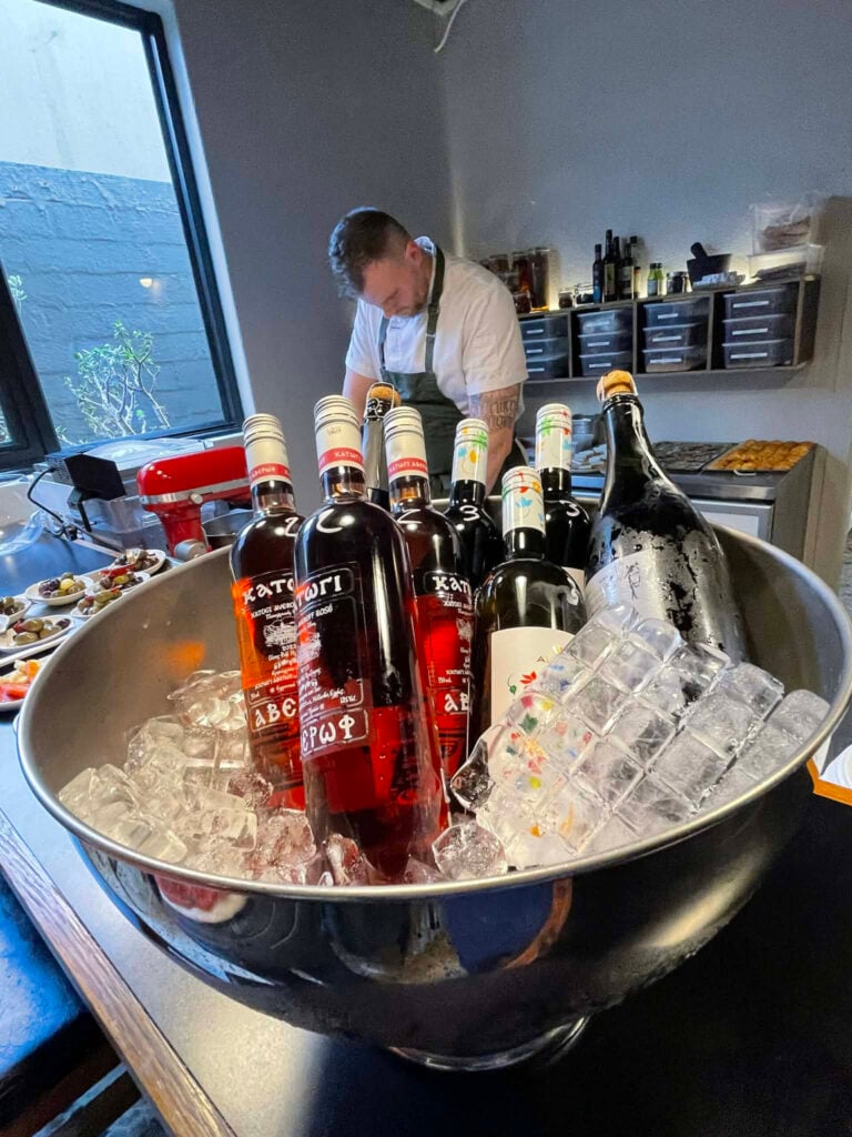 Some of the chilled wine provided at the Greek wine tasting. Photo: Jim Claven