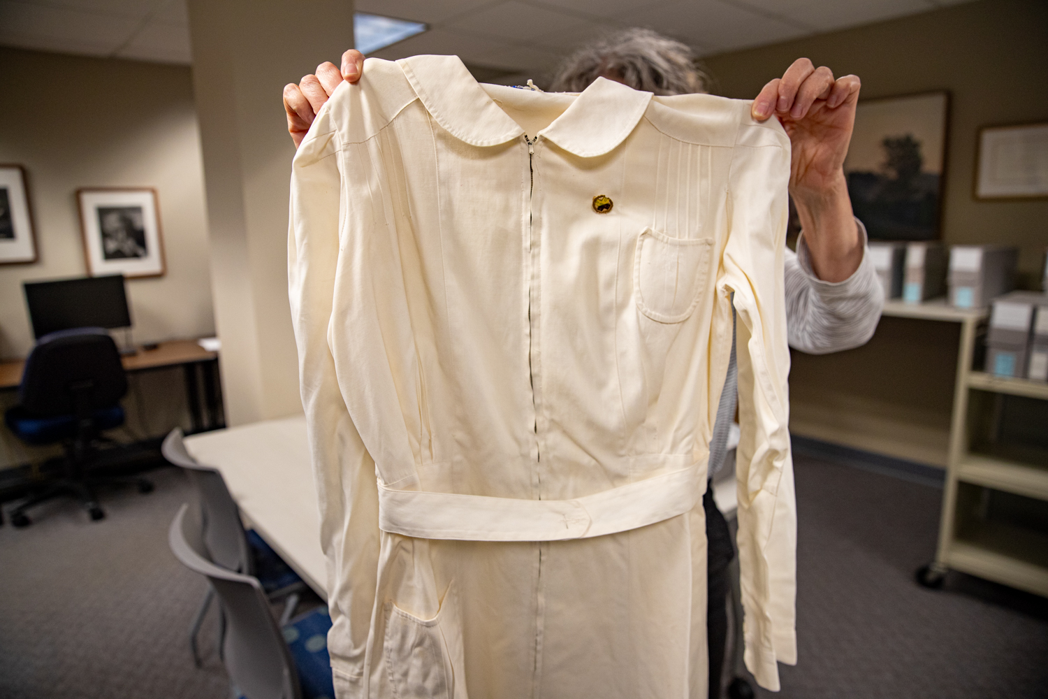 In an effort to understand if students would have used this item to study from, Holland took a new box out of the archives: an old university nursing uniform.