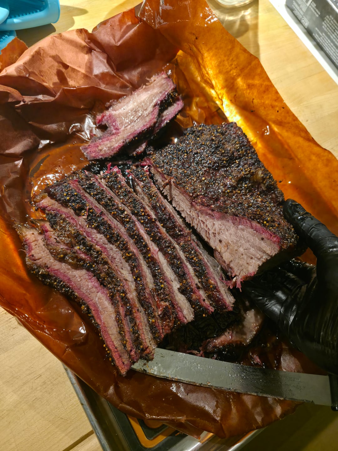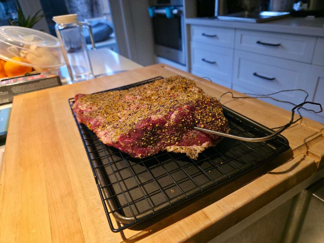 Felt like I did a lot of things wrong (cut/trimmed it weird, steak seasoning as rub, messy wrap), but ultimately came out amazing. Juicy, jiggly, super flavorful.