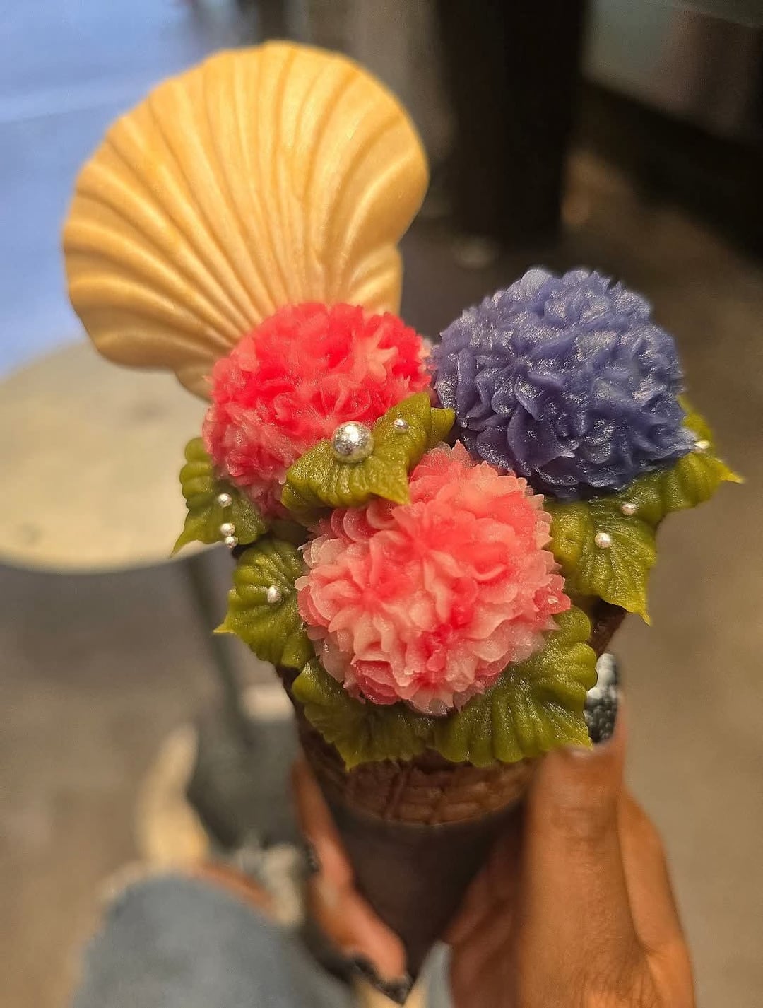 Pretty ice cream from Kyoto. Looks nice but I threw the top part away because it tastes like beans XD. Once you get to the vanilla ice cream, its super good.