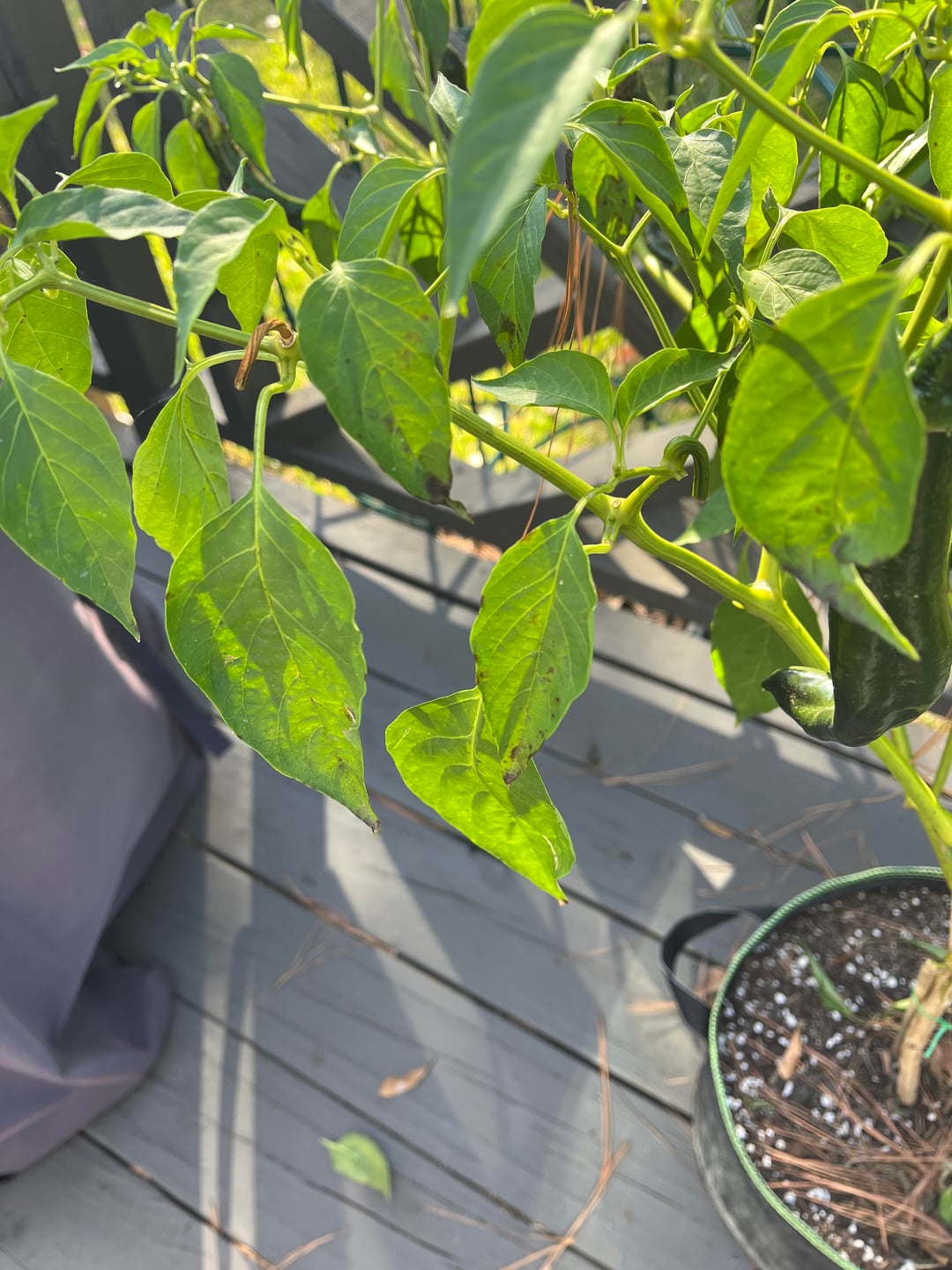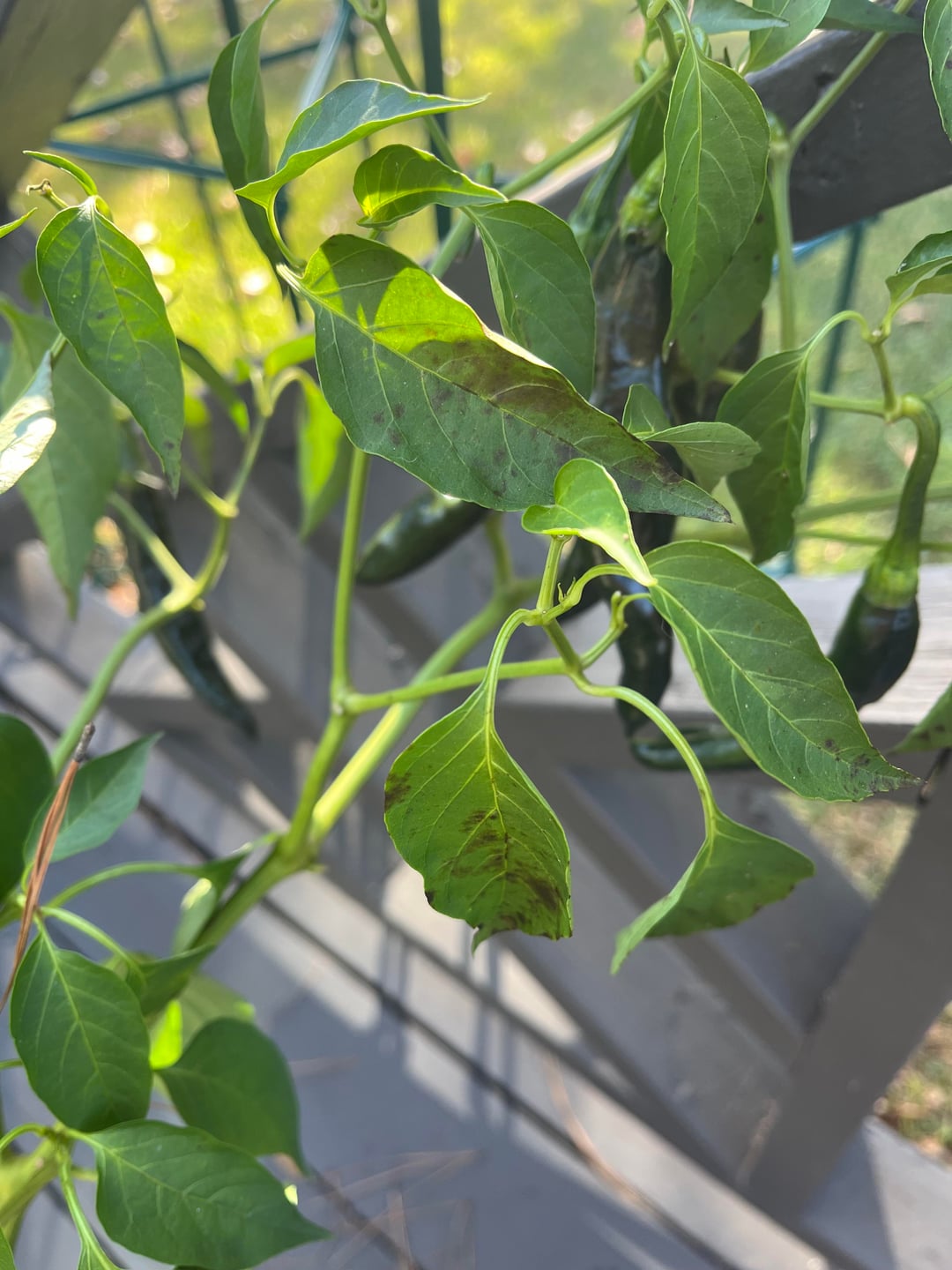 So my Padilla bajio pepper are STILL not ripe. There’s 1 that I feel is already there if not very close. My questions are; all these spots just recently showed up, what is it? Is it worth treating or should I just let the peppers finish out and trash the plant (if they ever decide to turn)