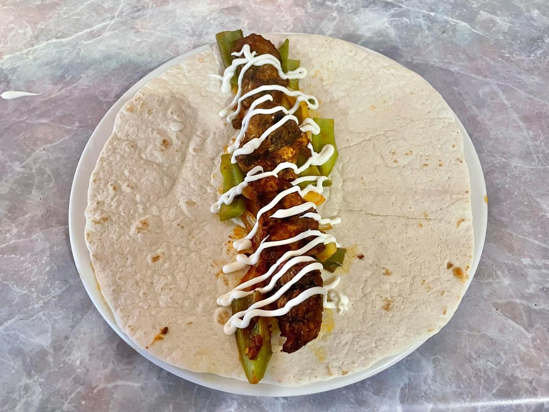 [homemade] Chicken tikka wrap with onion & green bell pepper