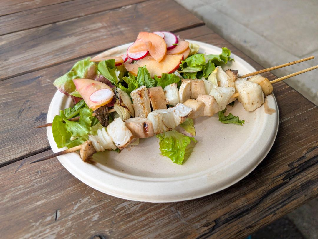The first Salona pop-up in May 2025 was an ad hoc affair: plastic folding tables and a couple of sun tents in the parking lot of the Mayfly taproom in Kenton. Alexander and their team grilled chicken wings on a battered Weber grill and carefully dropped hand-formed millet balls into a pot of bubbling oil on a cracked hot plate. But Portland’s classics nerds (and the classically curious) showed up in force, and the event sold out in two hours. “I just got completely bum-rushed,” Alexander says. “It was very chaotic.”