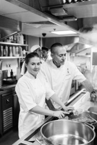 Her training began in 2010 where she worked in the kitchens of the Michelin starred La Table du Lancaster* in Paris. She then moved to Monaco to work in the kitchens of two of Alain Ducasse’s restaurants, La Trattoria and then to Le Louis XV*** at the Hotel de Paris.