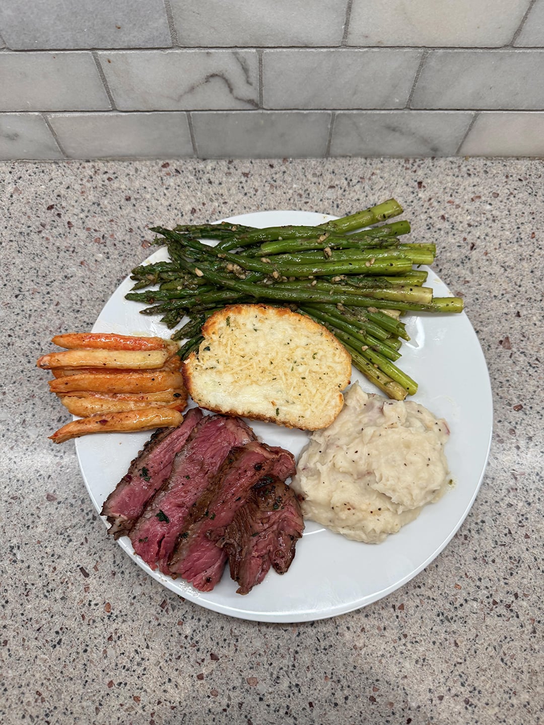 I think the plate needs more asparagus ๐ steak looks delicious! What did you cover it with after cooking?