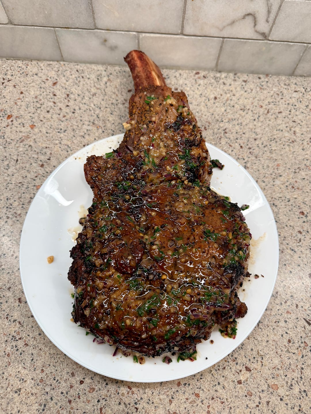 The pictures speak for themselves. Perfectly cooked and super juicy too. The only way this could be better is have a second tomahawk steak done the same way.