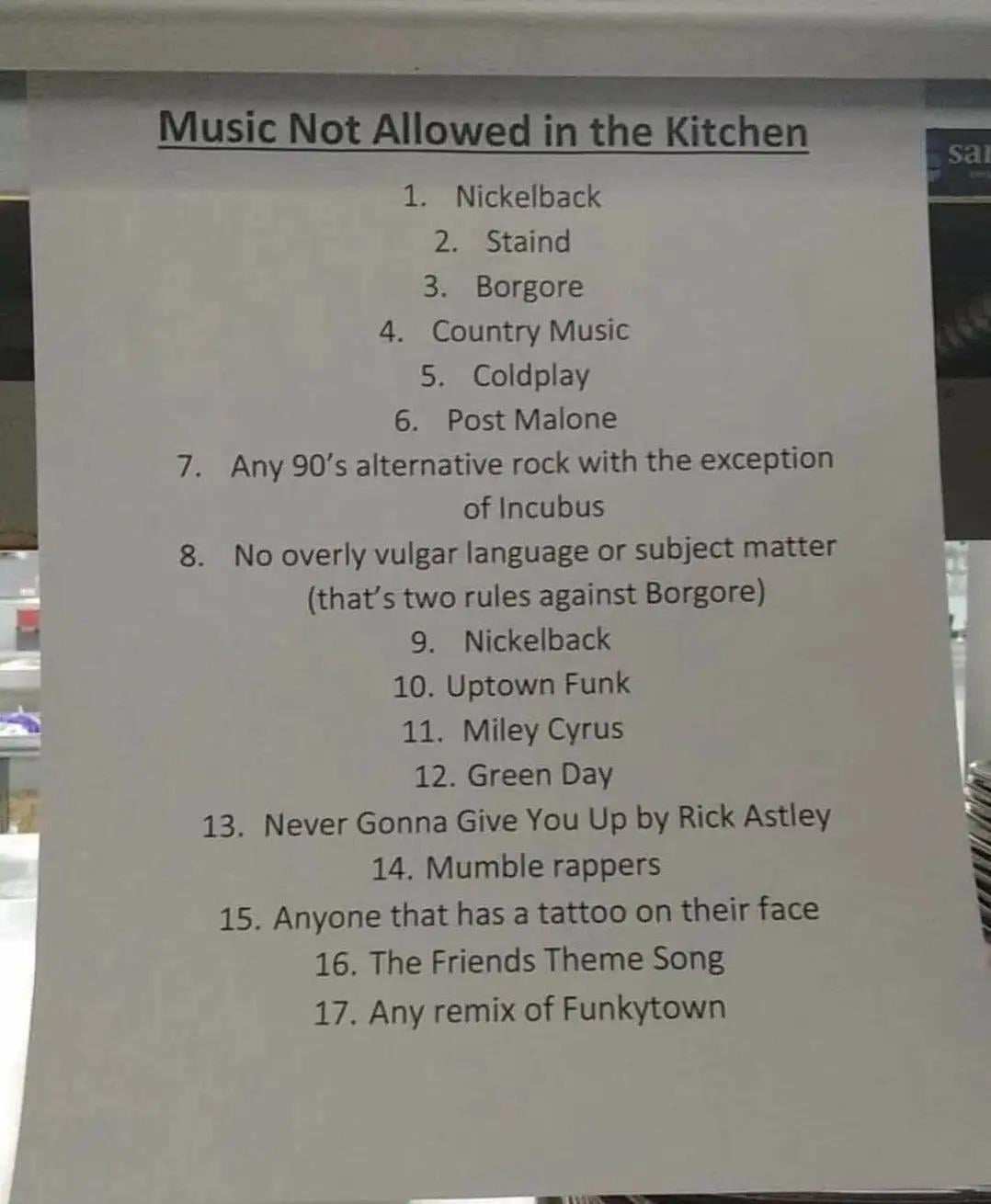 Not allowing 90’s alternative rock is just wrong on so many levels.