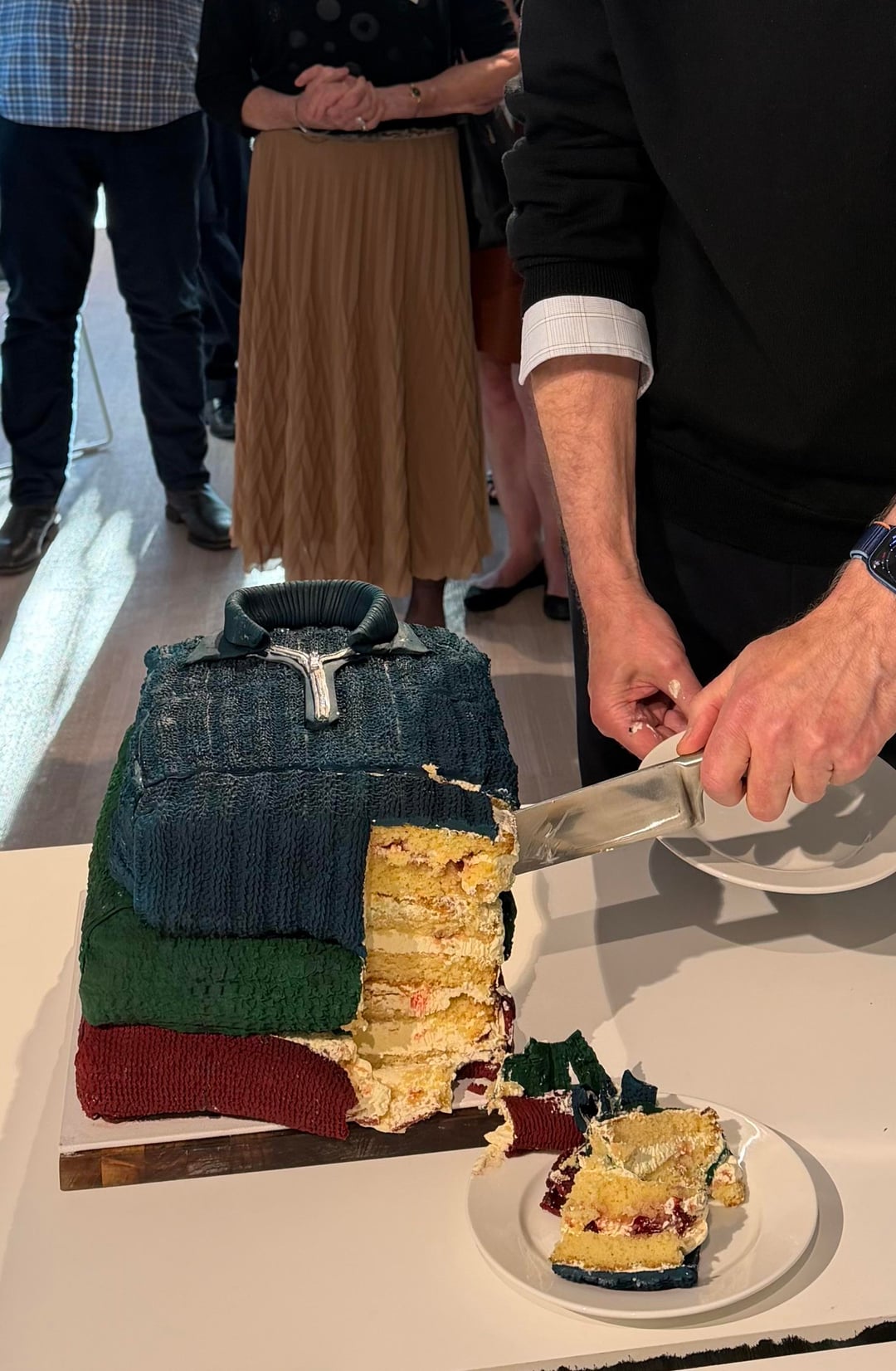 Retirement cake for a beloved colleague..he’s known for many impressive things but one of them is his steadfast commitment to wearing a woolly jumper (the Australian term for what Americans would call sweaters), no matter the weather. ✊