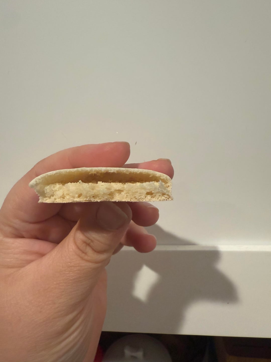 I’m pretty sure they’re more flat as I did large instead of small circles and I split one that was still kind of warm in half to see the inside.