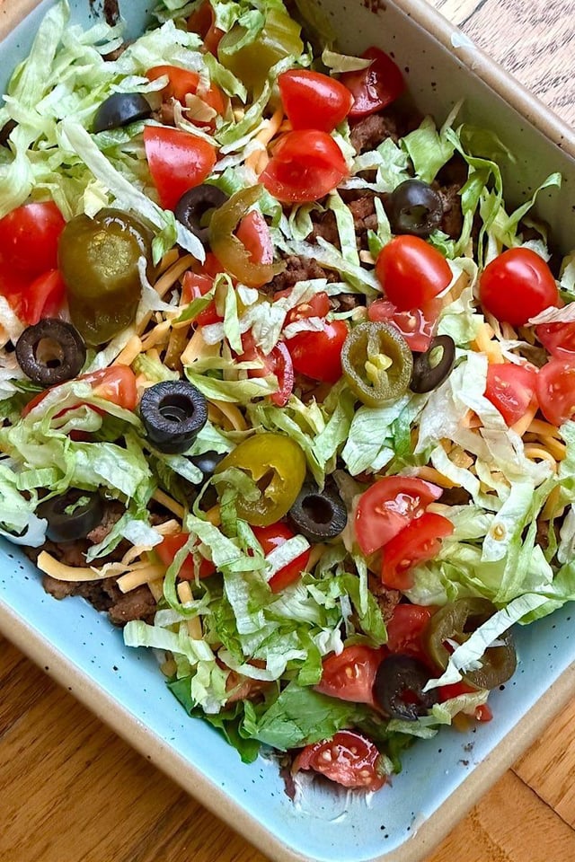 Here’s my Taco Dip that comes together in about 15 minutes. Printable recipe here: https://www.mydiabeticplate.com/taco-salad-dip/