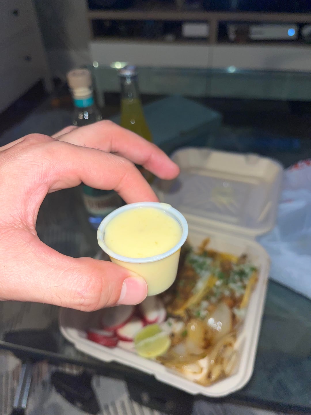 😔 I know we’re all sinners but damn dude . Please for the love of god , that’s not a Mexican in that taco truck right!? Only sauces that go on tacos are red and green sauce.