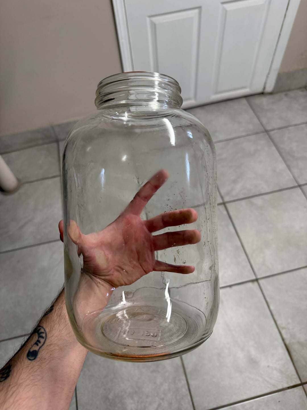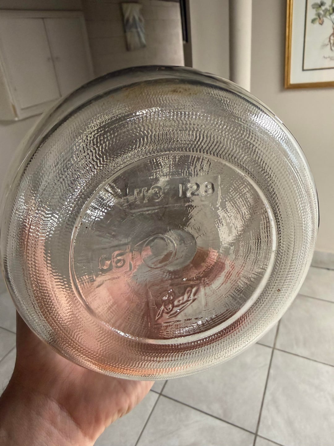 Can someone help identify this jar? I recently acquired a few of them.by Physical_Still2042 4 Comments DeathMonkey6969 1 month ago Those first two photos give me anxiety. 😉 Wild-Growth6805 1 month ago Nice find! Wild-Growth6805 1 month ago https://preview.redd.it/wtrmjpitba2g1.jpeg?width=594&format=pjpg&auto=webp&s=29ff22b6f36c9f6c6468b1ece4a1945ef1e05bc6The chart tells me the large jar you have in photo appears to be from 1960-1975. vibes86 1 month ago Looks like a pickle jar to me. The other commenters photo is good for the dating part though.