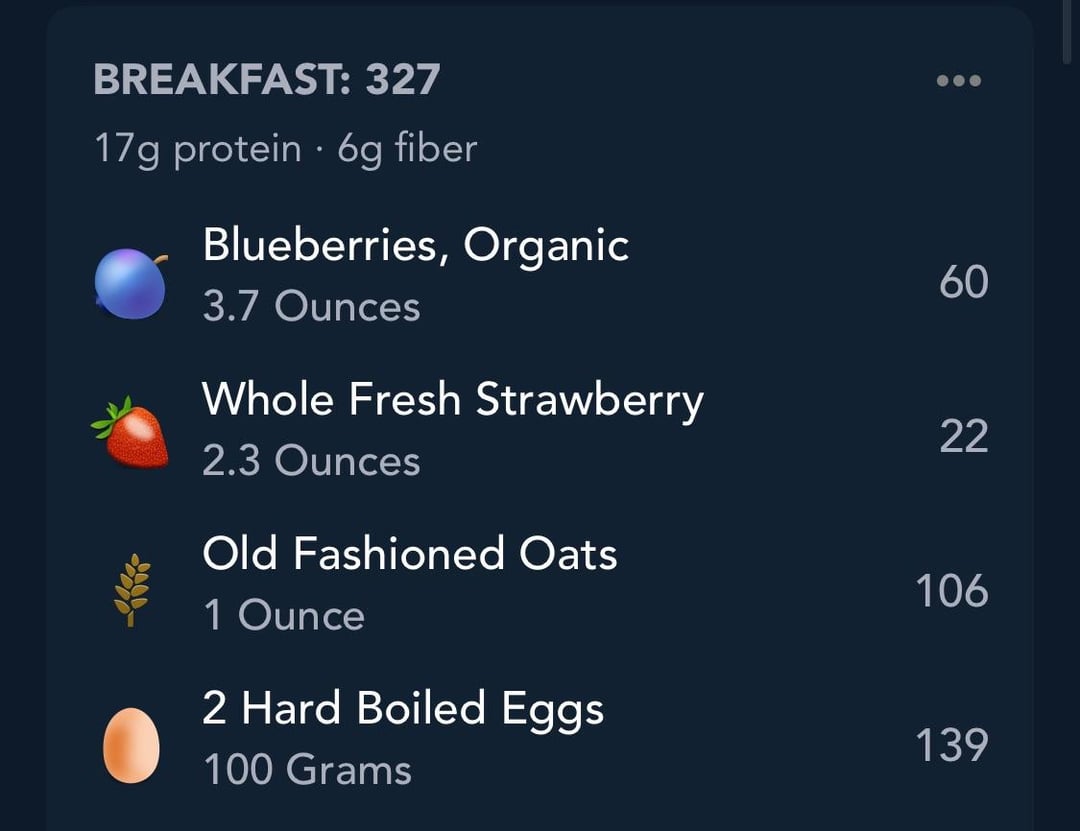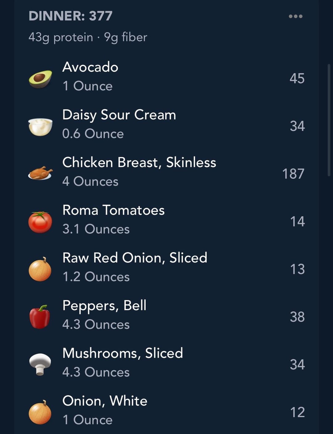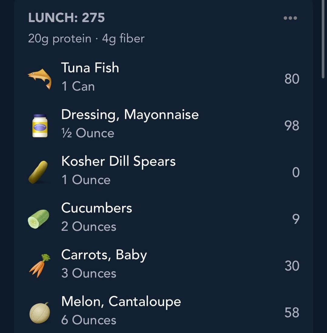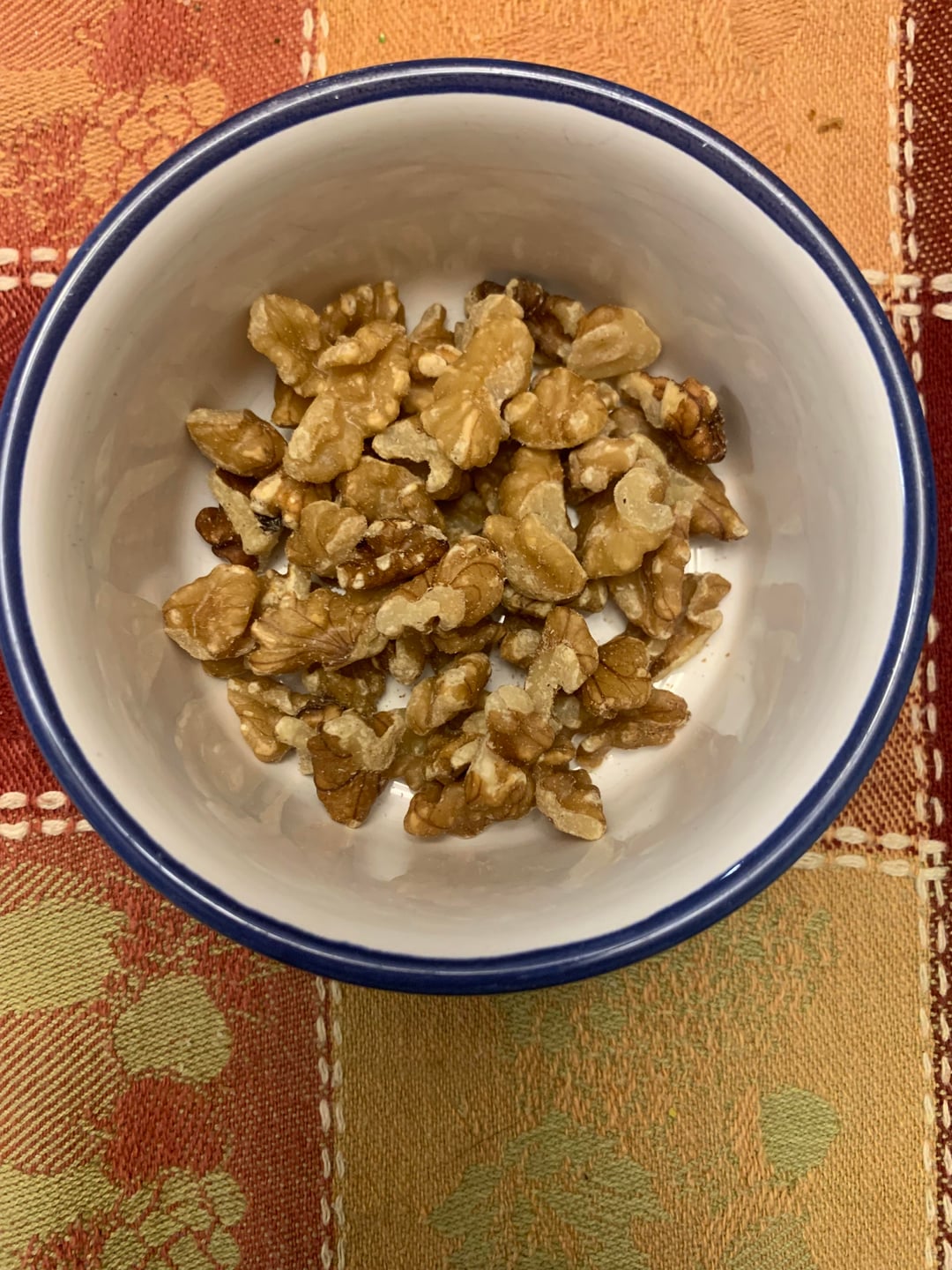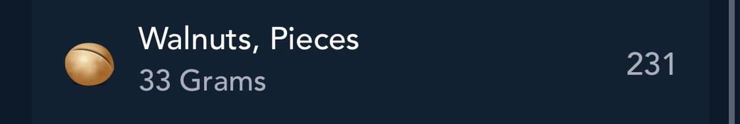 I was honestly full after dinner but hadn’t made it to 1200 yet. I don’t want to eat below 1200, even if I am “full” enough to just get through the day. So I added some walnuts to the end of my day and for a grand total of 1210.