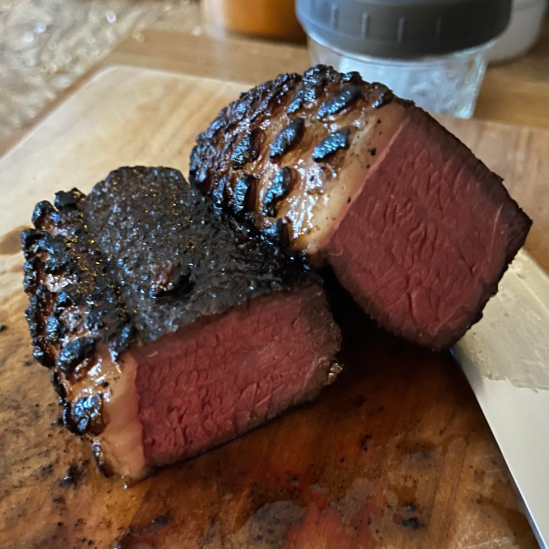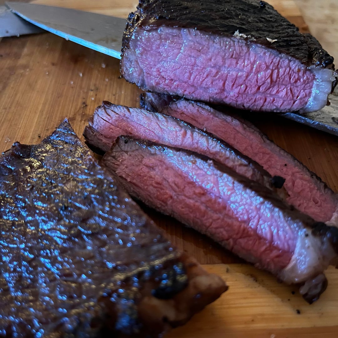 nice… next time you can save all the effort, by having slightly thinner steaks, covering with coarse rock salt (leaving it on there), and then sear both sides for a few minutes. My Brazilian friends of 30 years have ONLY done it this way and it’s wonderful every time….as in, everybody at the BBQ exclaiming and ooooing and ahhhing, and they aren’t even drunk yet….