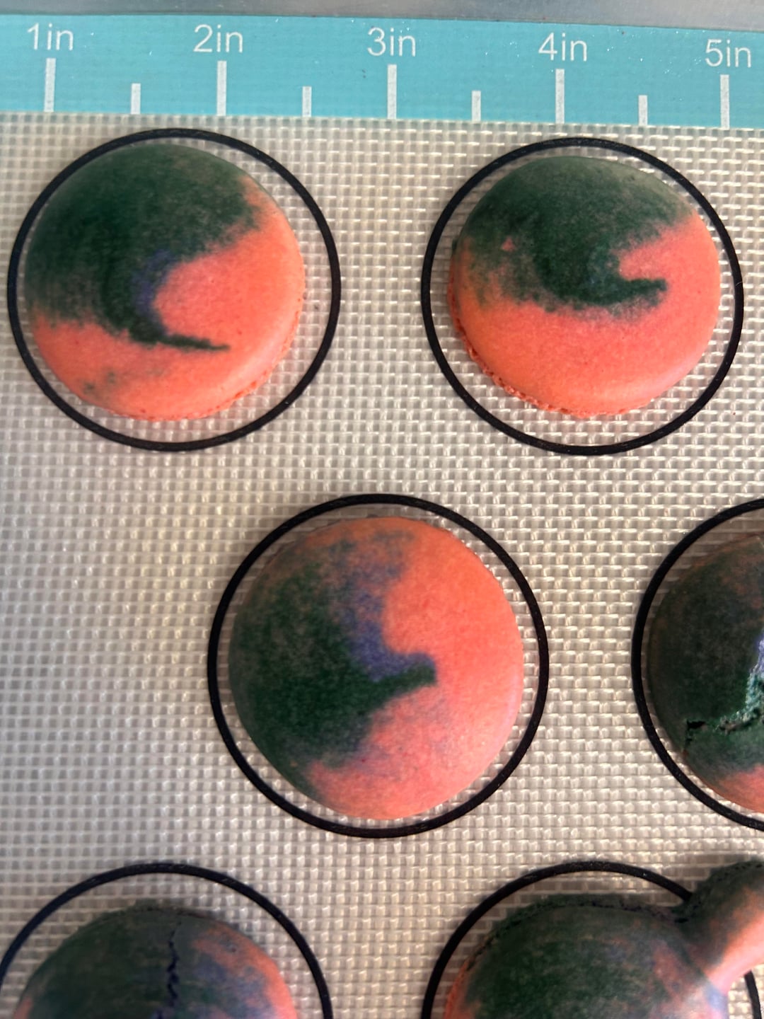 4) My other thought is to make sure you are piping the same way consistently. If you are swirling some, dolloping others, maybe the batter spreads more on one plop vs another, it could create sticking issues on the mat.