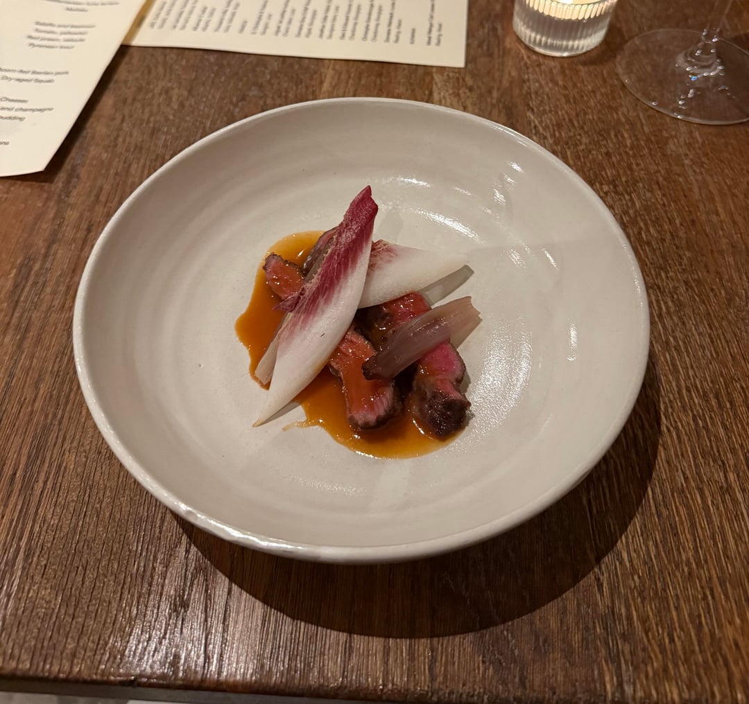 Dish 4 – 10/10 – salsifis and Beatroot. Multiple types of beats and butter come together to make a comforting, almost Mac and cheese like dish. Warm and comforting, nutty, tender, umami, this dish was just fantastic, I practically licked the plate.