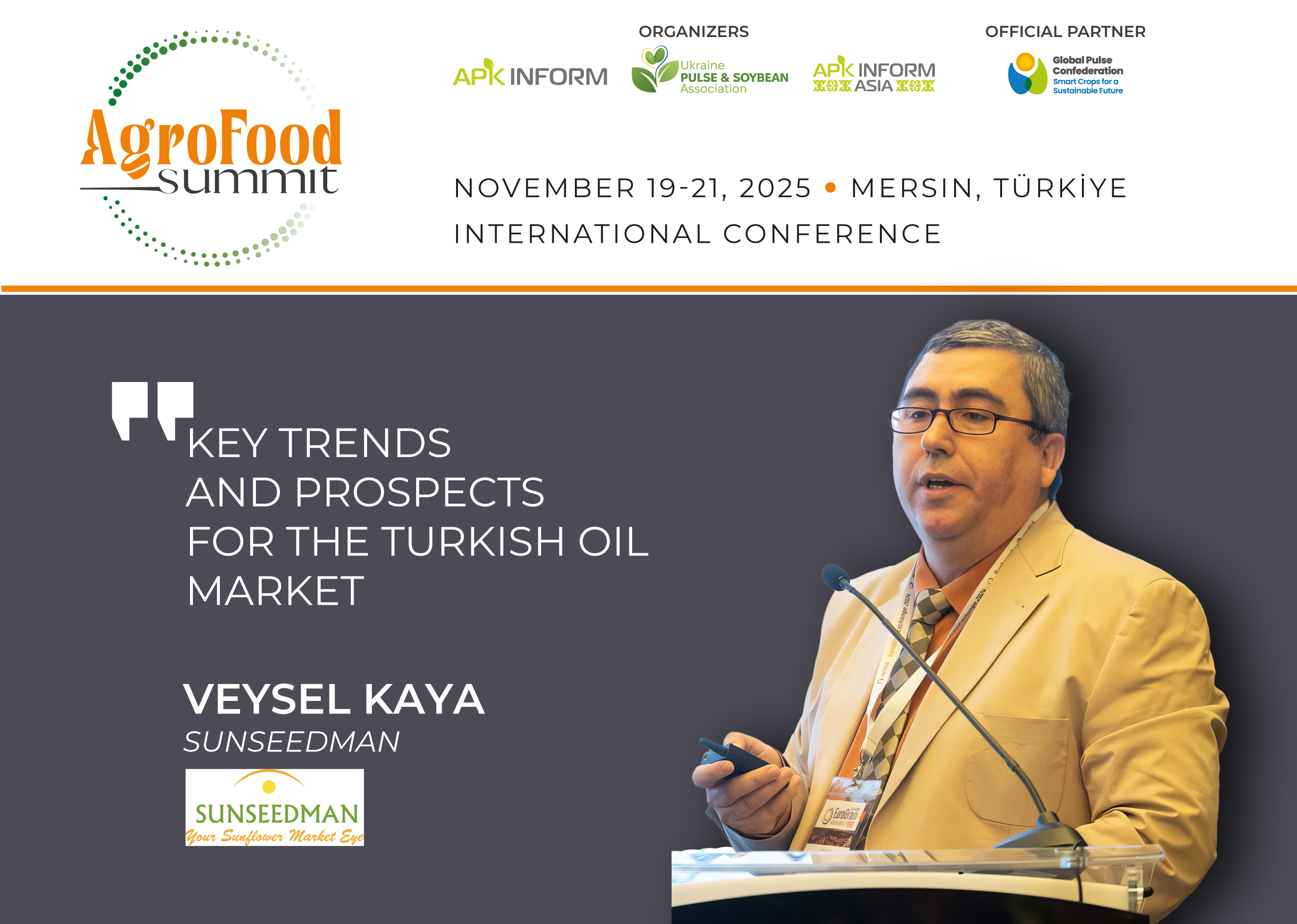According to expert forecasts, in the 2025/26 MY Türkiye’s vegetable oil production will be slightly lower than last year – at 2.11 million tons (including 925.000 tons of sunflower oil). Annual oil consumption in the country will also decrease – to 2.66 million tons (sunflower oil will remain at the same level of 1.35 million tons). This was reported by Veysel Kaya, head of the analytical company SUNSEEDMAN, at the international conference AgroFood Summit 2025.