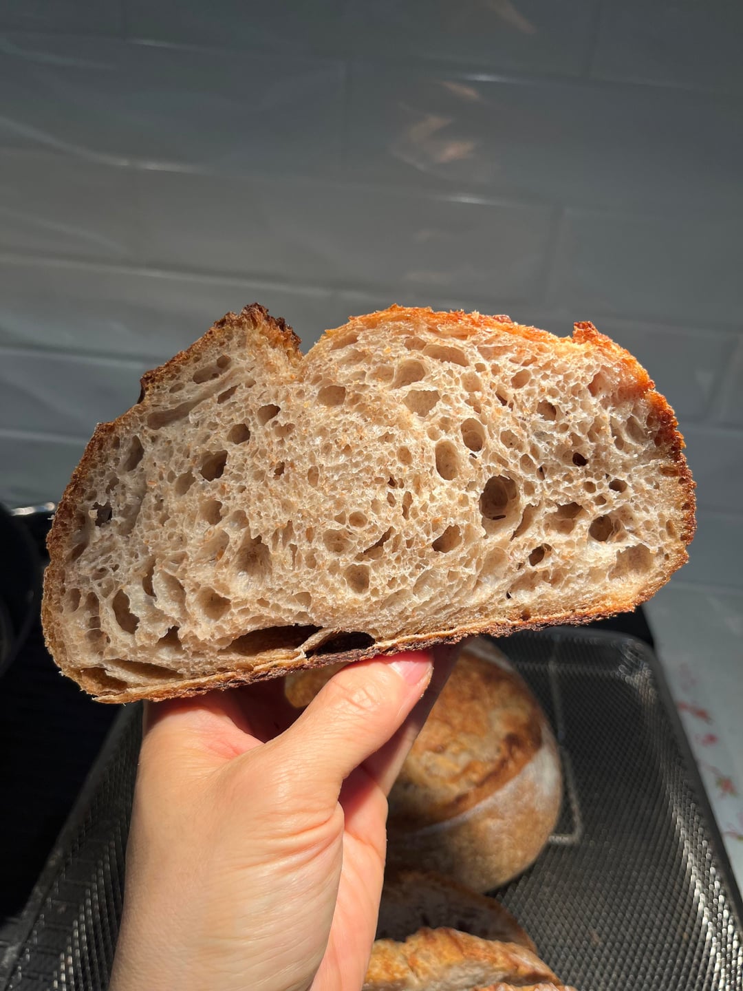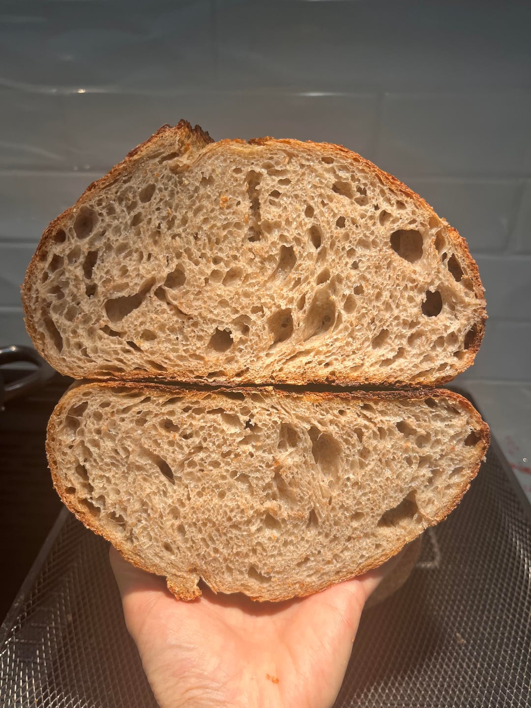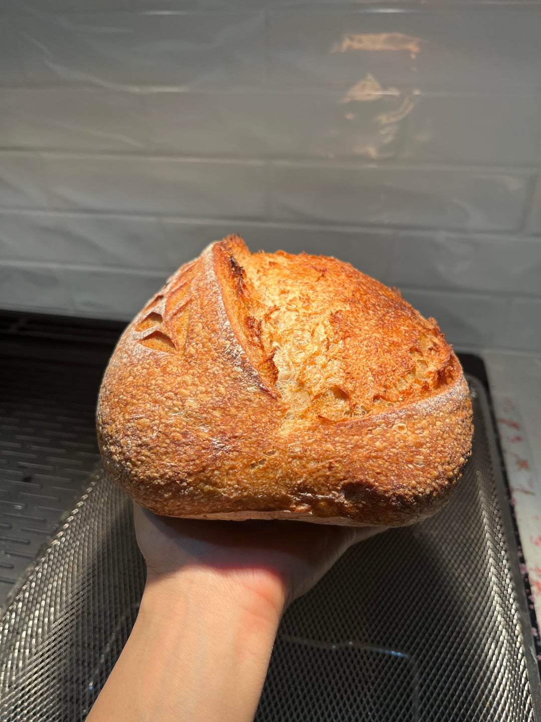 Experimented mixing with a standmixer because sometimes I just don’t have the strength to knead. Open baked on a baking steel for the first time. I’m improving!