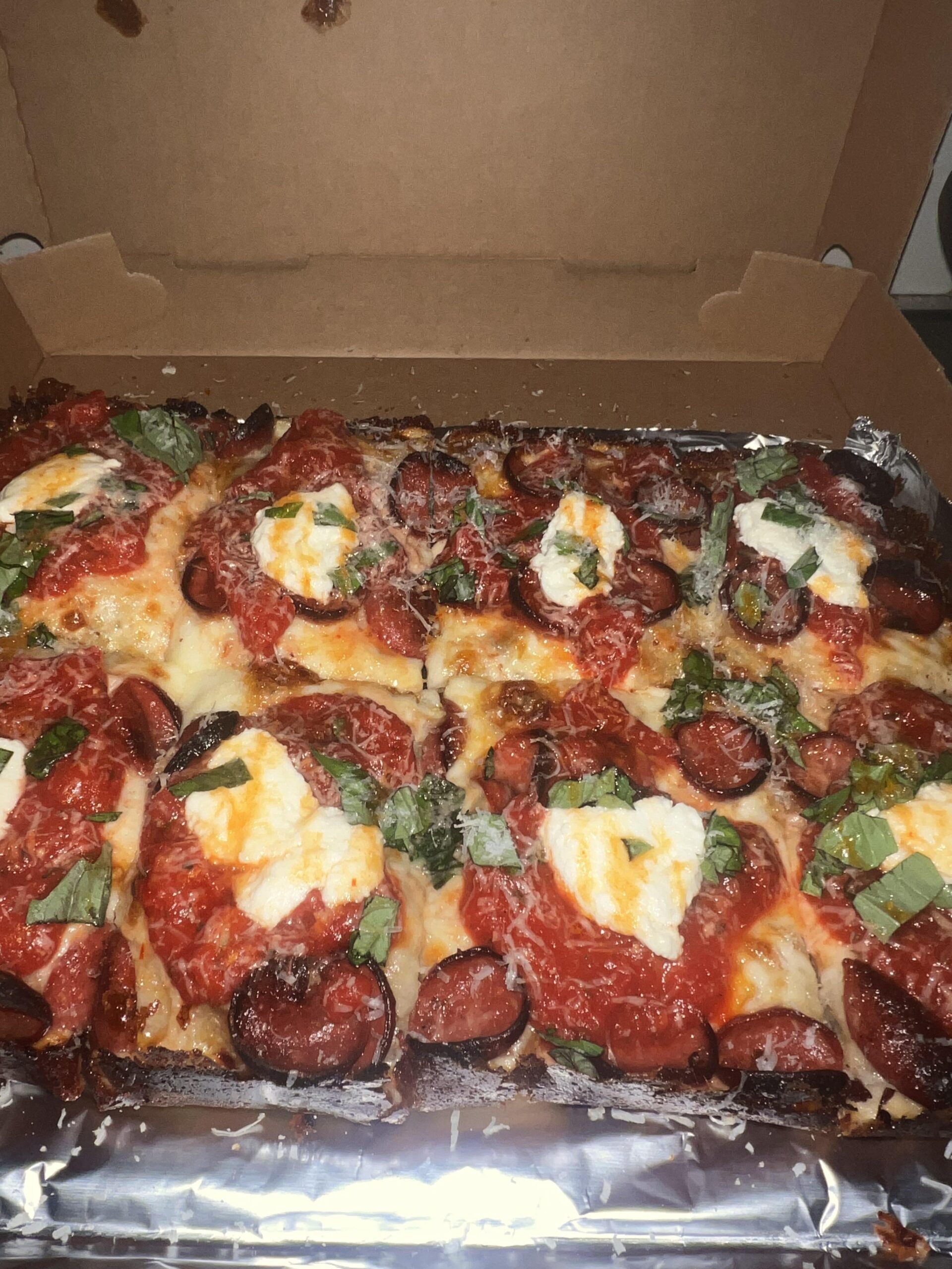 That’s a gorgeous pizza. Alas, Detroit style can’t be had in my area, and I’m too broke to buy the right sort of pan to make it in. I might try it in a cast iron skillet. But the results from my home oven won’t be the same.