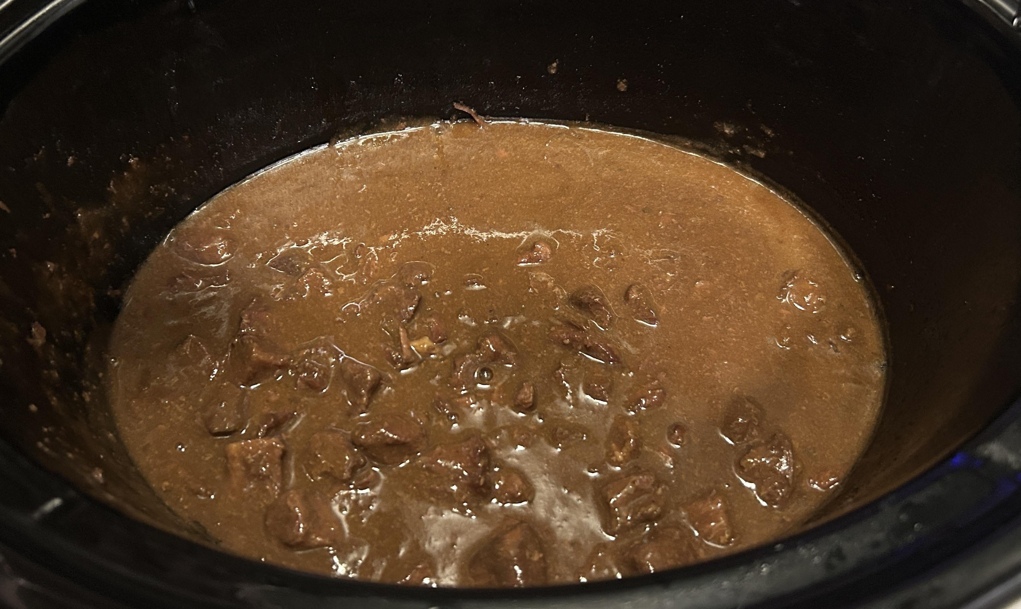 I made an experiment that my spouse is loving referring to as “mystery meat slop.” About a year ago I split the purchase of a whole butchered cow with my in-laws, and I’ve reached the stage of consumption where all I have left are a handful of random cuts of beef in my chest freezer, most of which are lean. I decided the best way I could use them up were to combine a couple of slow cooking techniques that I’ve used in the past with steak tips and chuck roast.