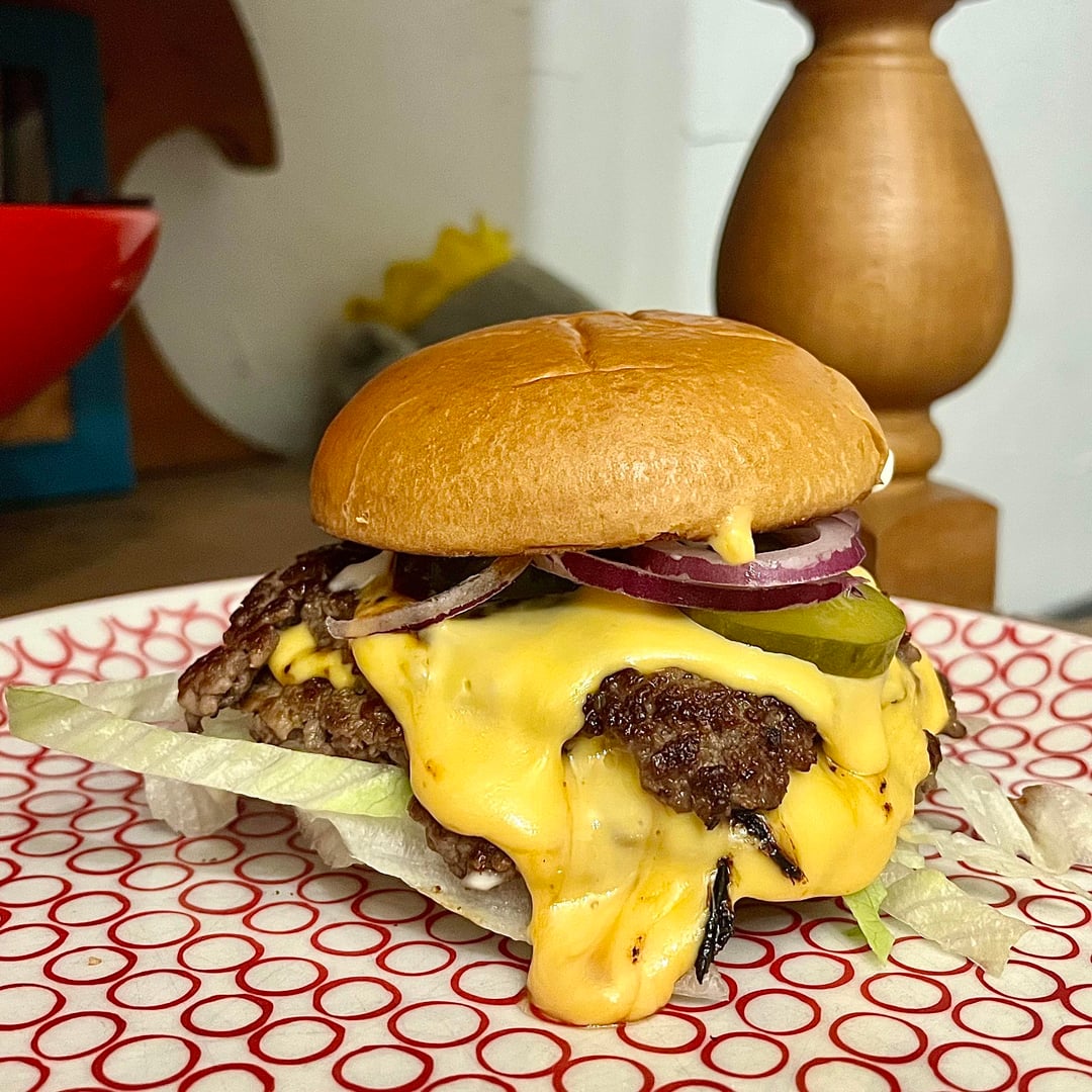 What a perfect plate for a burger. Idk what it is but there’s something about red and white packaging/plating of a burger that really fits for me