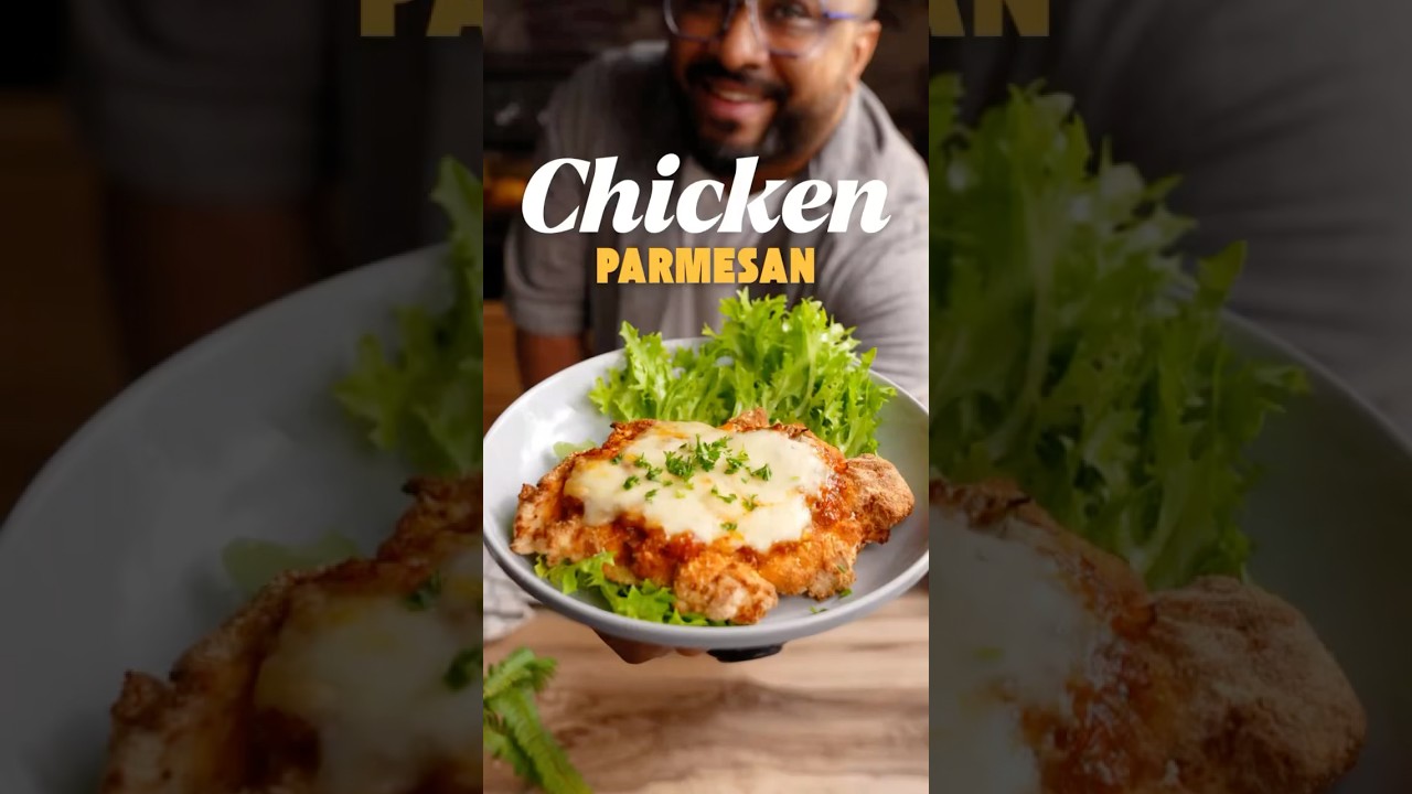 Okay, if you’re over here to just watch that cheese melt, congratulations. You’re my type. Let’s make chicken parmesan for the weekend and tag that person who owes you food, the one you’ll force to make this with you over the weekend. Tag them in the comments. I will convince them. Now, the chicken breast needs to be flattened and become pat. Not with omp. You can use a mallet like this or if you want you can just butterfly it till it’s really nice and thin. Make sure you season it well with salt and pepper. Then we dip in egg and breadcrumbs. And you can even double coat it if you want. This goes into the air fryer for about 8 to 10 minutes till it turns golden and starts acting expensive. And while that’s happening, I also made a chunky tomato sauce. You don’t have to do this from scratch, but I generally believe it’s really easy to make. You can even use storebought ones which are really good. Also, if you can get your hands on some fresh mozzarella or regular mozzarella works as well and definitely use some good quality Parmesan cheese. Now, the fun part. Take that crispy chicken, spread the sauce over it, top it off with the mozzarella, parmesan cheese, and send it back till the cheese melts like it saw your crush. And that’s it. This is ready to be served chicken parmesan that fully slaps.