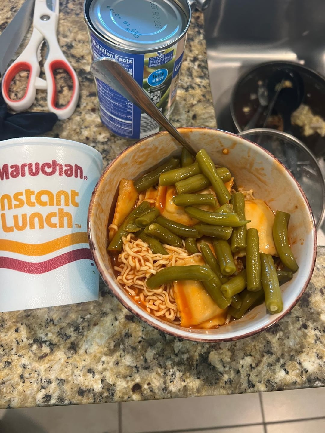 I mean it’s not take out. He’s hitting some nutritional requirements. Presentation is needing of improvement but I’m sure he’ll say something like “it all comes out the same anyways”. Either way I approve of this divorced dad meal