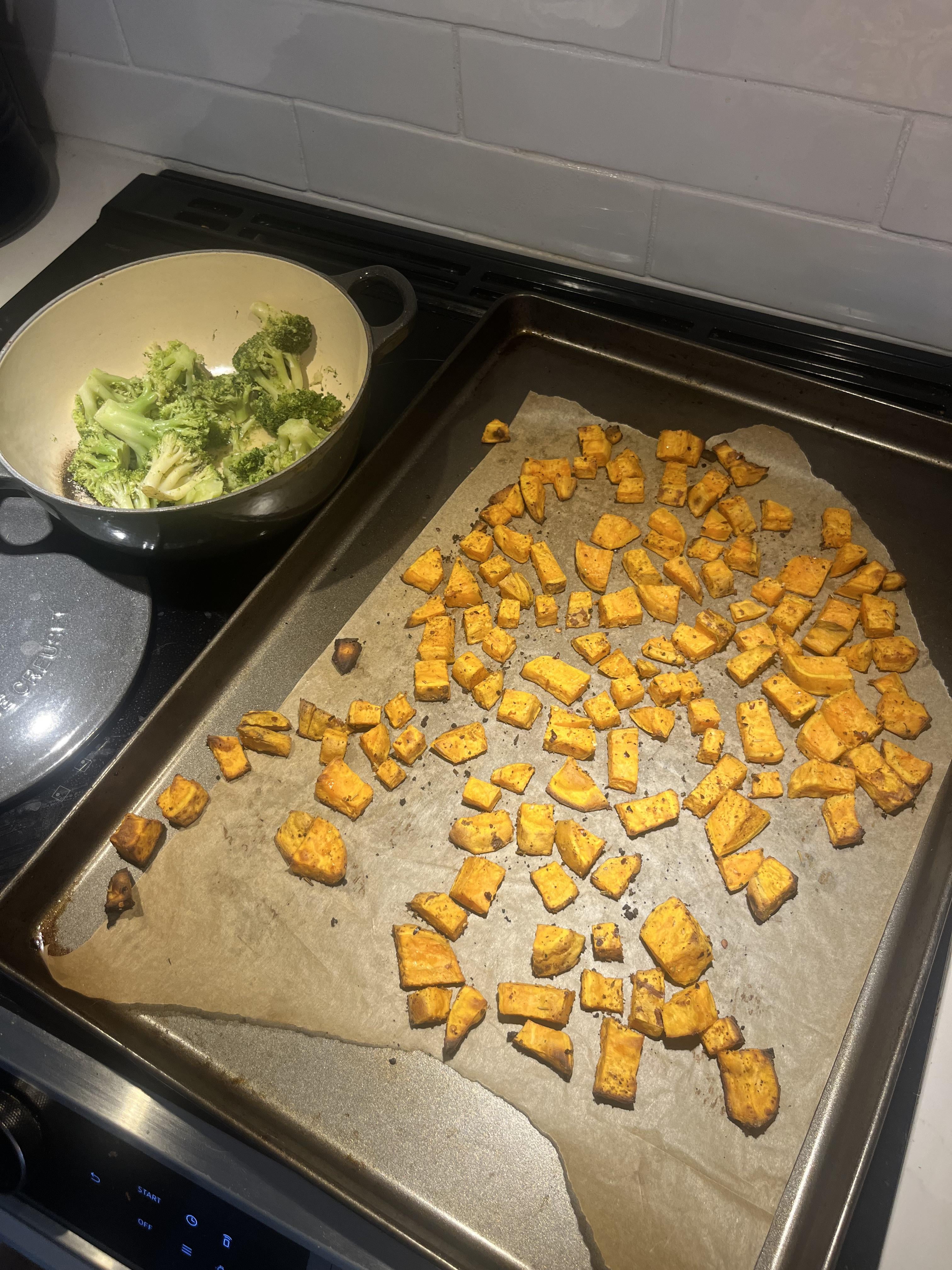 COVER IN SEASONING and it’s actually a delicious and filling meal. Sweet potatoes are like 150-200 per potato