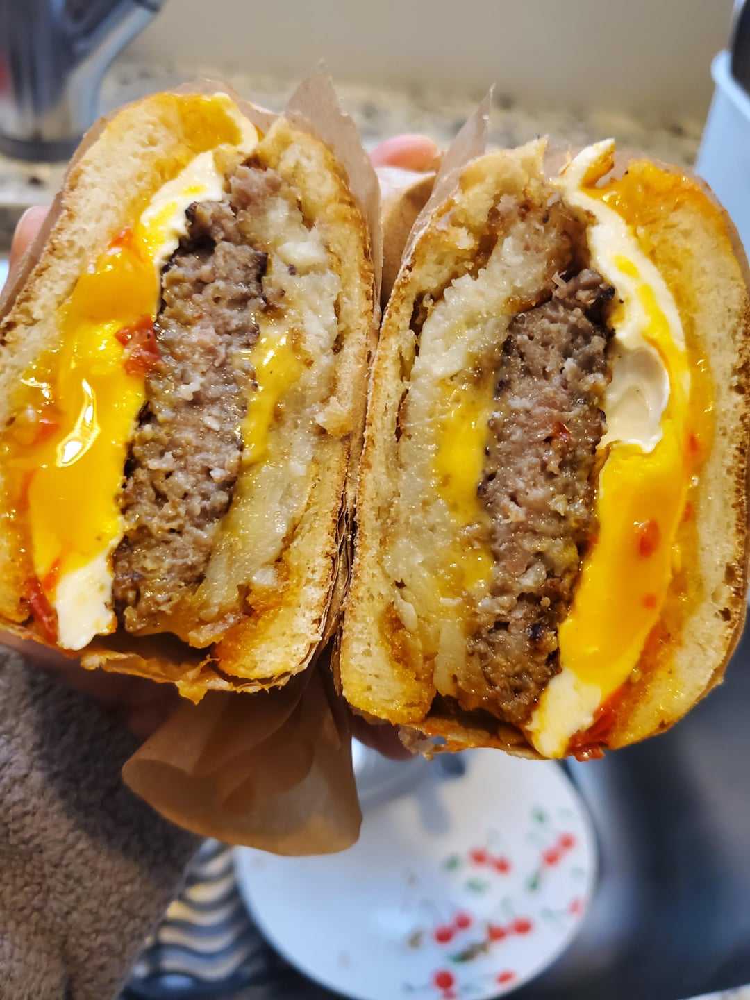 Hashbrown in egg sausage muffin sandwich is a game changer.