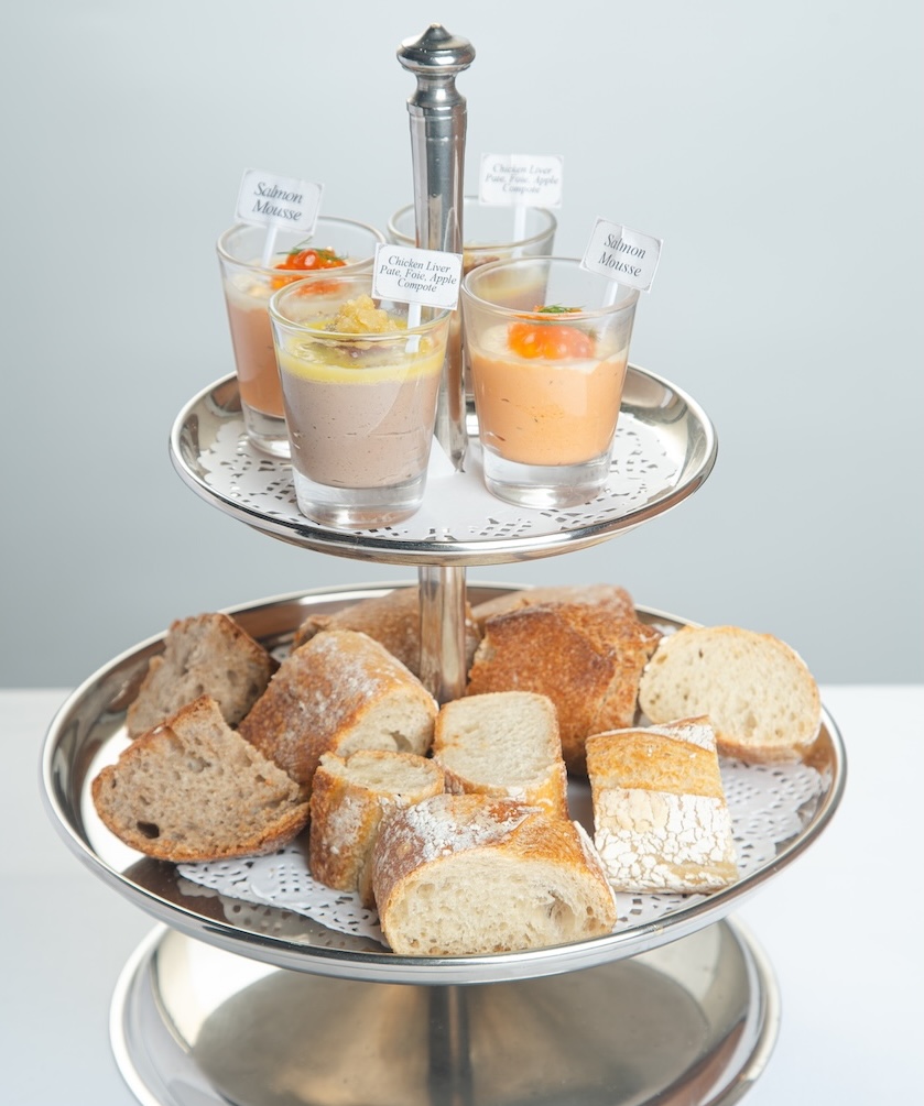 Salmon mousse, chicken liver paté, foie gras, and apple compote