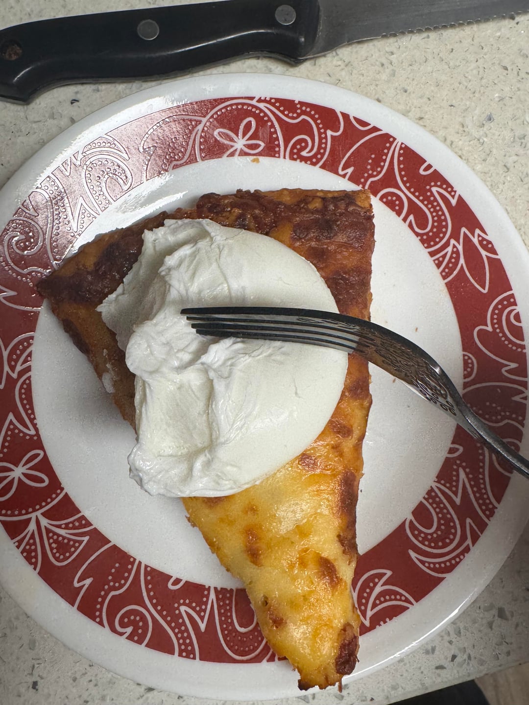 It sounds kind of appetizing, I don’t think I’d like the hard boiled egg I’ve seen in the Brazilian posts here but I’d give a sunny side up pizza slice a chance if I could fold the pizza around it