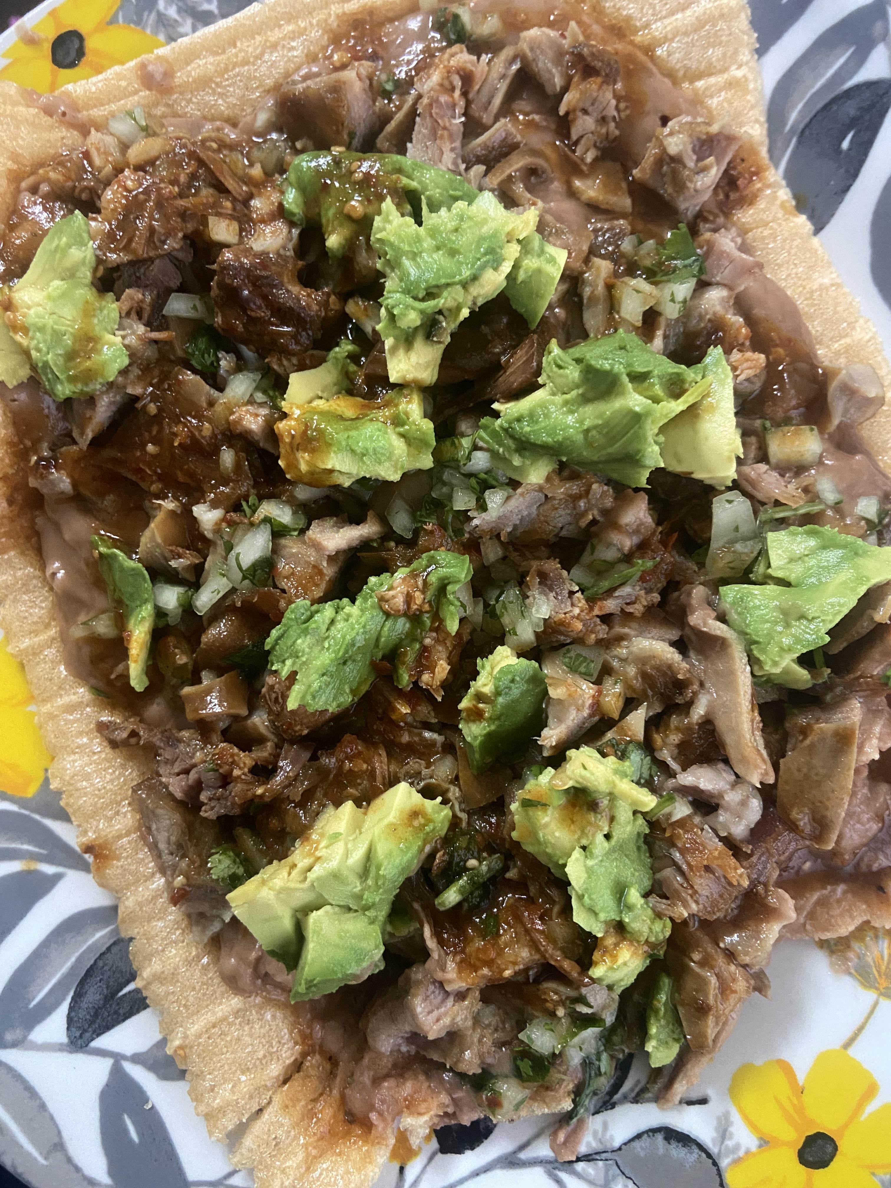 It’s missing crema & nopales, But I wasn’t in the mood for it. Frijoles, ceboya, cilantro, lemon, aquacate,salsa, carnitas, & my fav Buche. by Thirty4MINUS_12 Dining and Cooking