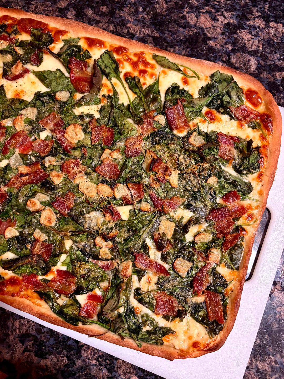 Bacon, garlic, and spinach is a fucking incredible pizza combo. If anyone here is ever in Houston and wants a fantastic pizza, order the Joe’s with bacon at Star Pizza