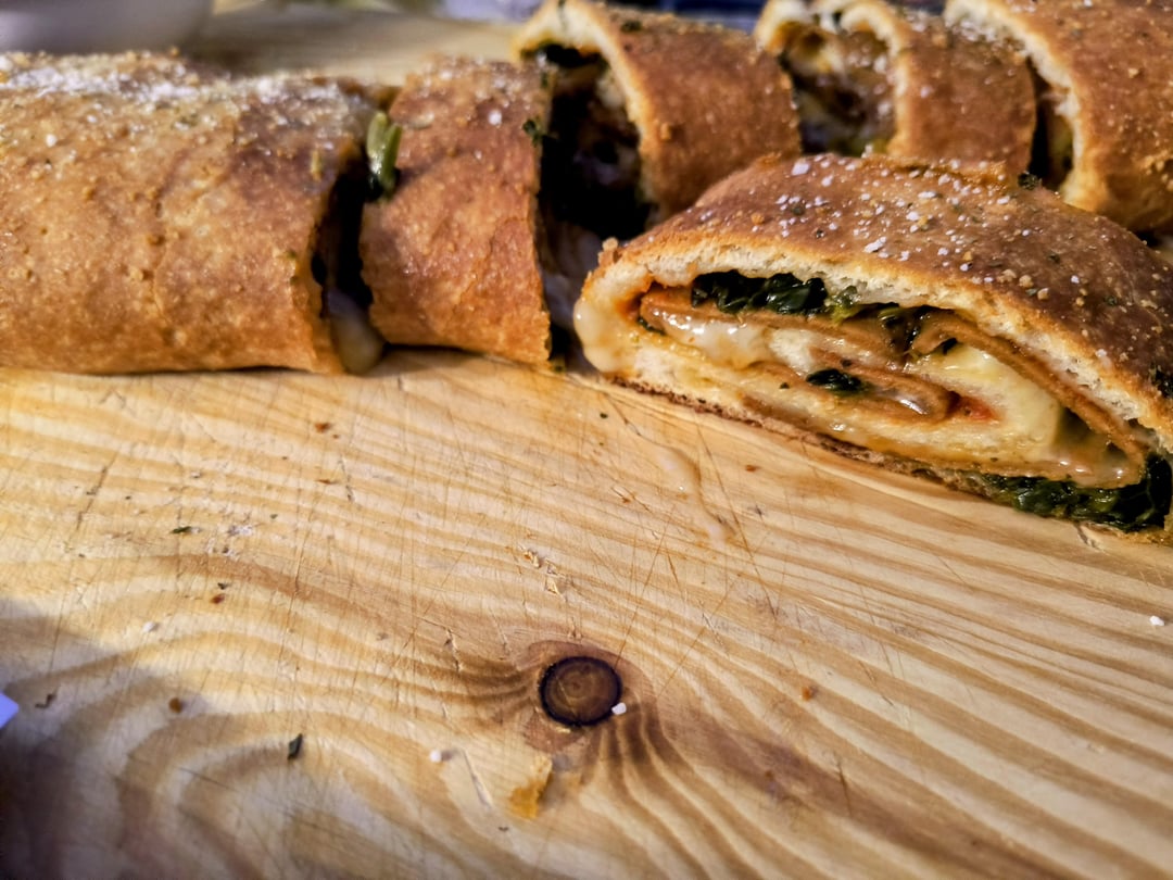 Through this together quickly last minute, and absolutely fell in love with it. Pillsbury dough, Daiya mozzarella shreds, Field roast balsamic mushroom deli slices, spinach and sauce. Follow your heart parmesan sprinkled on top