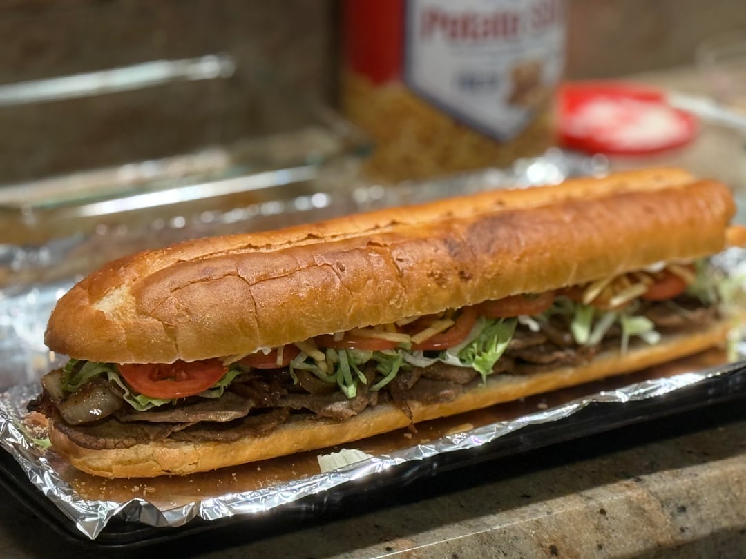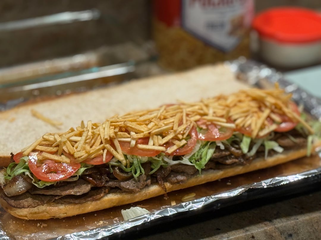 Cuban steak sandwich with garlic aioli