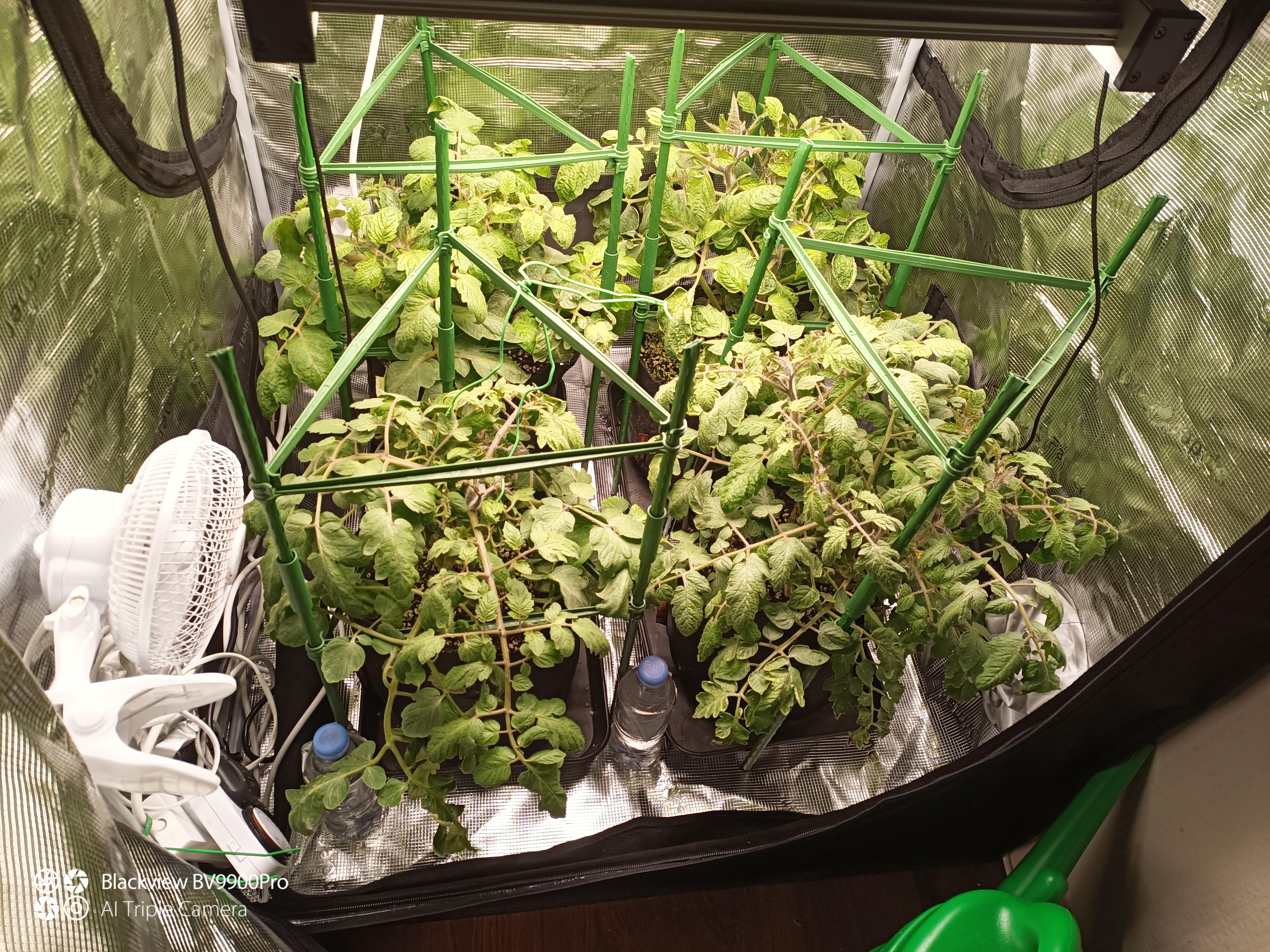 As i say feel free to tell me what I'm doing wrong as this is my first grow of tomatoes. At the moment I'm thinking i might have to take a plant out in a couple weeks to make space.