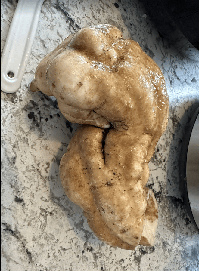 7 months later i dig this out. not what i was expecting lol. any ideas? are any sweet potato varieties toxic?