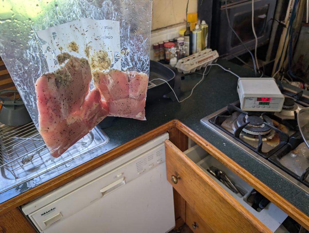 I was making carbonara so I thought I'd sous vide some chicken thighs to accompany it for a bit of a protein boost.. I flattened them out a bit and put them in a ziplock bag with a bit of salt, pepper, garlic, thyme and a pinch of msg. I did 72° for an hour and a half the put them in a sink full of cold water to rest for 10 minutes nd then hit them with the blow torch and sliced them up. They were alright. But maybe a bit dry or overcooked? I've cooked juicer and more succulent thighs on the grille.