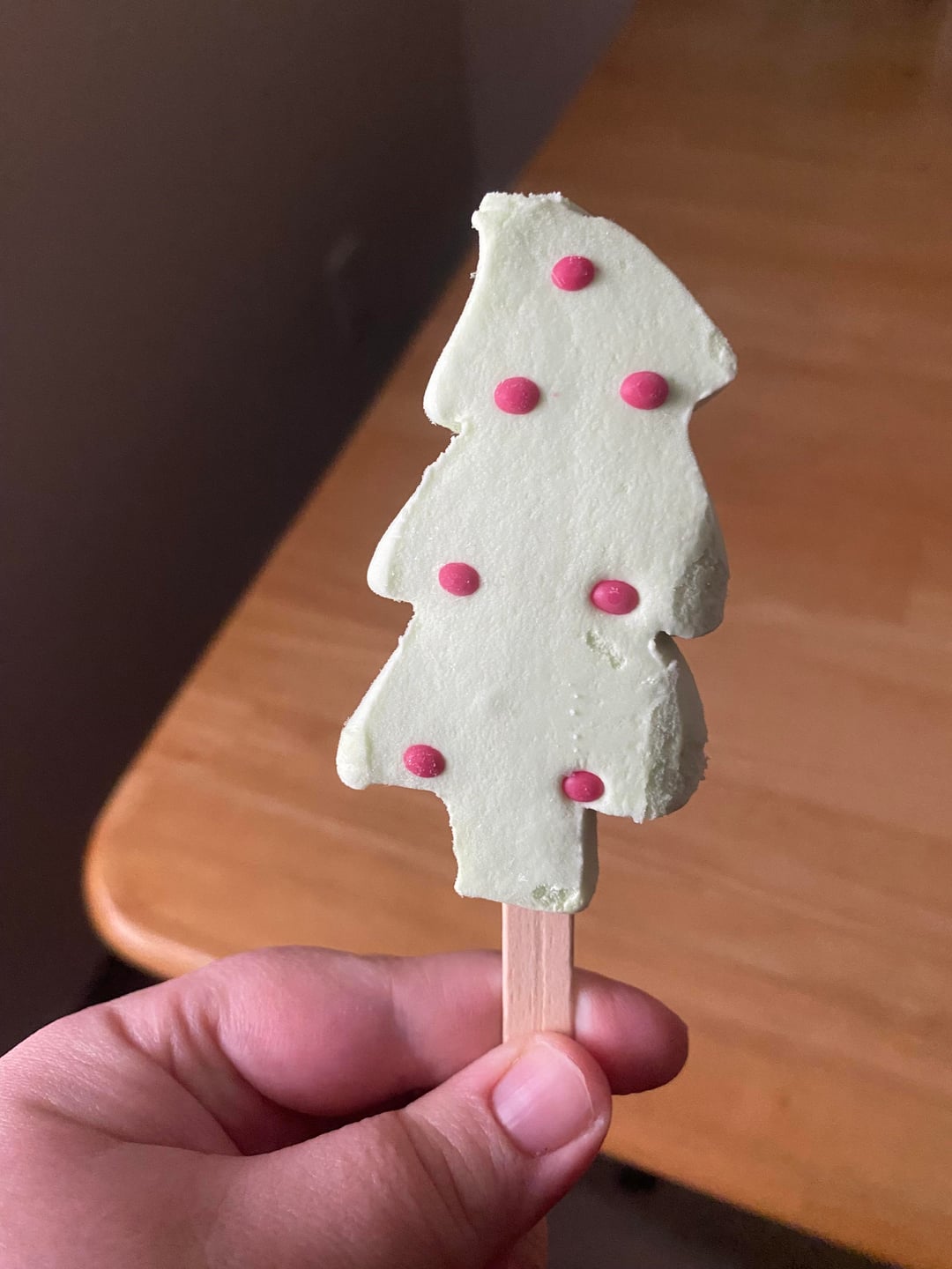 I got the Christmas tree ice cream pop from Aldi. It’s ok. Not my favorite ice cream I’ve got there. The vanilla tastes not like vanilla. I can’t figure out what it tastes like. 6.5/10