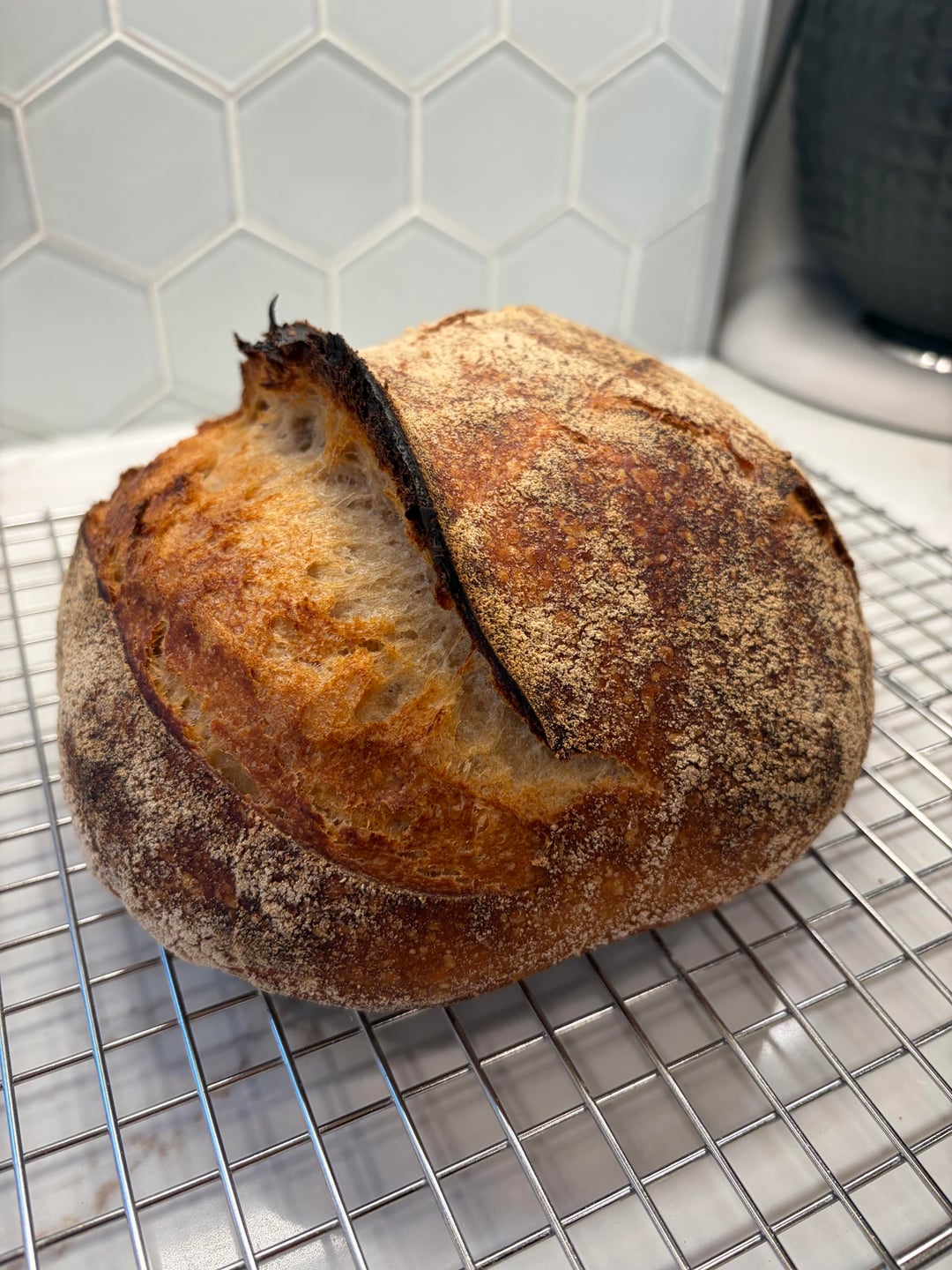 It’s not the hugest airy loaf in the world, but I’m very happy that it doesn’t look like the UFOs I’ve been baking for the last 6 months 🛸
