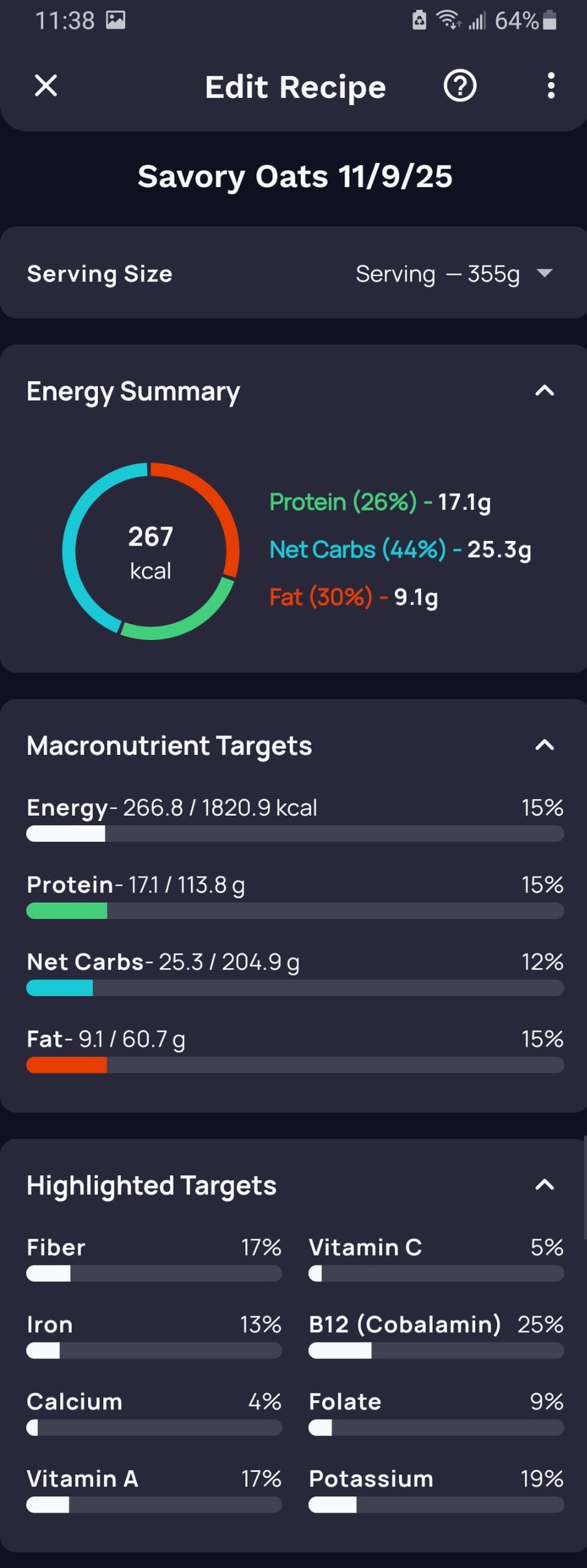 I threw a bunch of stuff together this morning and this is the outcome. 6 bowls of savory oats with spinach and green onion. I used egg in mine (although the chicken in the other post sounded very good too). Normally I like to put a fried egg on top but I was meal prepping so I just stirred the eggs right into to bubbling cauldron of oaty goodness.