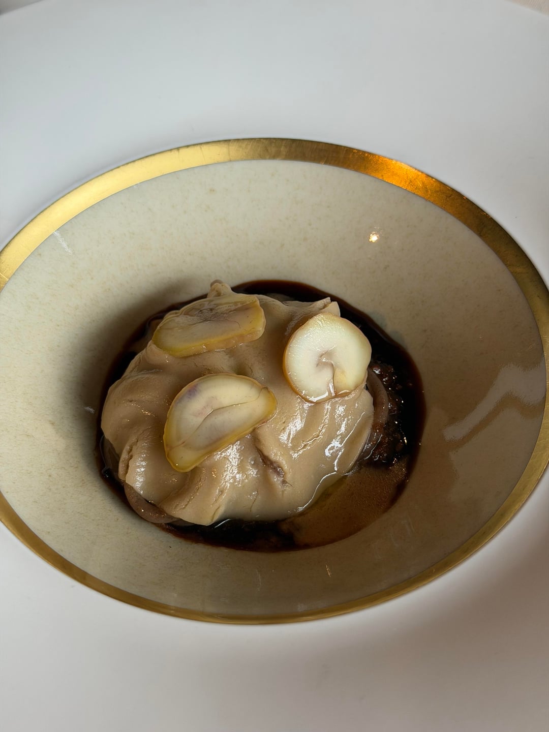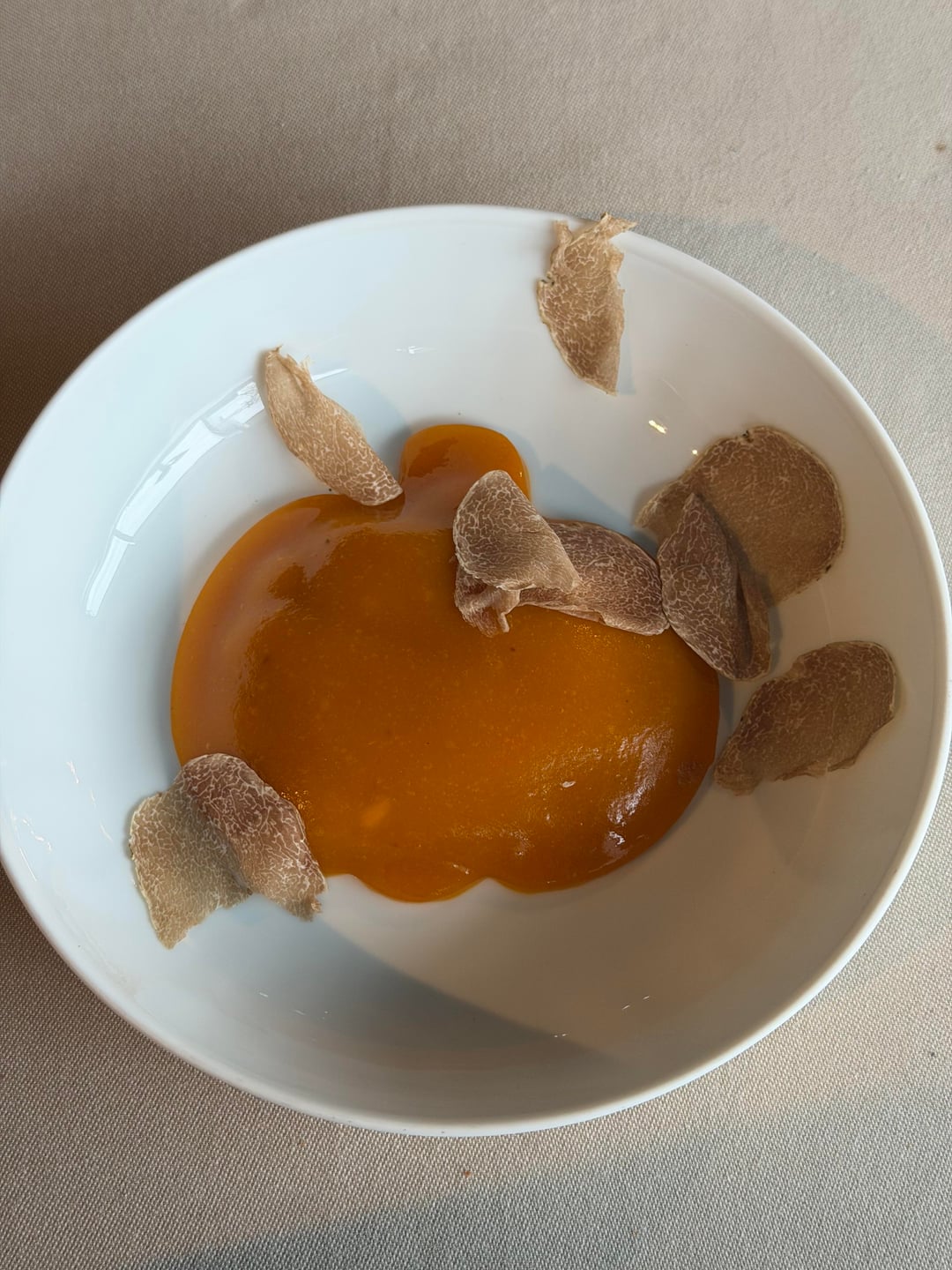 Pre-Dessert was a pumpkin… paste, jelly, blanket? I’m a little at a loss but like candy/pie filling over porcini mushrooms, topped with truffles. Big autumnal flavors and just delightful. Wish I had thought to take a picture after I actually dug into it. Almost laughably plain on the plate as it came out and the shaved truffles just kinda over top not especially dazzling visually but as you dug in it was like digging and foraging for mushrooms. Truffle pig simulator. Unexpectedly wonderful dish. Absolutely delicious.