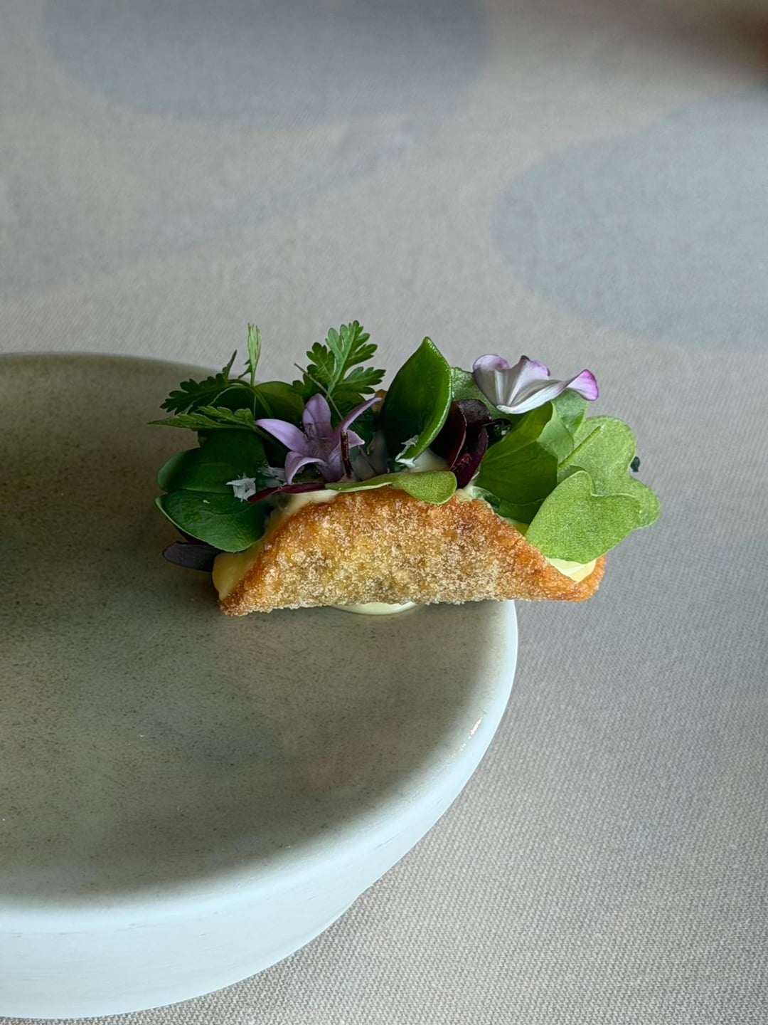 After this they brought out a second bread service. Made with wholemeal flour, star anise and fennel seeds, accompanied by a hemp and hazelnut emulsion topped with apple balsamic vinegar. The emulsion was absolutely insane. So good.