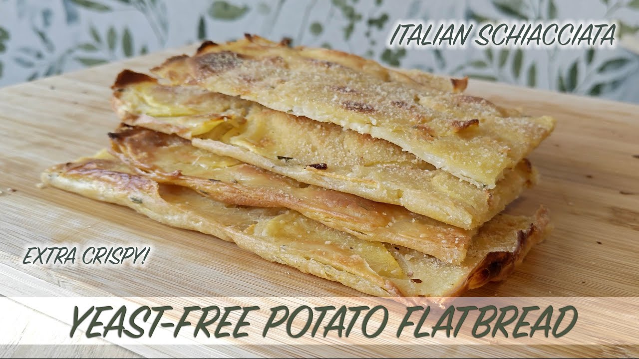 Oh, hi! You caught me eating like there’s no tomorrow! After all, what kind of cook would I be if I didn’t taste my food first to make sure it’s good? We cooks always have the perfect excuse! And honestly, I’ll happily admit I taste-test… maybe more than I should, especially with a recipe like this —where a thin layer of soft, creamy, melting potatoes is tucked between the crispiest top and bottom you’ve probably ever tasted. Italians call it “schiacciata”, which literally means “flattened” or “pressed,” referring to the thinness of this rustic dish — something between a flatbread and a potato bake. And the word flat couldn’t be more fitting, since we’re talking about just a few millimeters of thickness. In this video, we’ll take a look at how to make the classic version, a gluten-free version, and a high-protein one. classic potato schiacciata For one tray, you’ll need 3 to 4 medium-to-large potatoes. Peel them, then thinly slice them. The slices should be nice and thin. Soak them in cold water for about 30 minutes to remove the starch. please check description box In the meantime, slice a small-to-medium onion and set it aside. Preheat the oven to 200°C in convectional mode. Now, let’s prepare the batter. Add 200 g of all-purpose flour to a bowl, then gradually pour in room-temperature water while mixing. As the flour starts to absorb the water, keep adding a bit more until you get a smooth, creamy batter — slightly runny, but not too thin. I used about 250–260 g of water. This consistency is what you’re aiming for, no matter what type of flour you use. Next, add 1 teaspoon of salt, 2 tablespoons of extra virgin olive oil, and some freshly chopped rosemary. Whisk again until everything is well combined, then set it aside. Now let’s go back to the potatoes, which should be well rinsed by now. Let them drain in a sieve. In the meantime, prepare the baking tray. I’m using a standard oven tray… the kind that usually comes with the oven. Line it with parchment paper, then brush or rub a bit of oil all over the surface. Finally, sprinkle a generous layer of breadcrumbs on top. Some people also like to use semolina or cornmeal instead. Once the potatoes are well drained, spread the slices out on a thick kitchen towel. Place another towel on top and gently press to dry them thoroughly. In a large bowl, pour in all the batter. Add the sliced potatoes and the onion — all of it, or just half if you prefer a milder flavor — and mix everything together with a spatula or your hands until well combined. Once mixed, transfer the mixture to the prepared tray. Use your hands to spread it out evenly, filling in any gaps and moving the potatoes around so the layer is uniform. Gently flatten the surface. Finally, drizzle some extra virgin olive oil on top and sprinkle a generous layer of breadcrumbs. Our classic potato schiacciata is now ready to bake! Start by baking it on the lowest rack, or directly on the bottom of the oven, for the first 10 minutes. Then move it to the middle rack and bake for another 20 minutes. If you’d like extra browning, you can finish it with a few minutes under the grill — totally up to your taste. And there we go! Make sure nothing is stuck to the tray, then transfer it onto a wooden board. Perfectly crispy! Potato schiacciata can be served straight from the tray as a main dish, or cut into small pieces for an appetizer, side dish, snack, or even breakfast if you like. Now, let’s take a look at how to make it using different types of flour, and how to add vegetables for extra flavor and color. Gluten-free potato schiacciata In a bowl, add 200 g of rice flour and start gradually pouring in room-temperature water. My rice flour needed about 260–270 g of water. Rice flour behaves a bit differently. It may look lumpy at first, then suddenly becomes runny as you whisk in the water. Don’t worry about this. Add 2 tablespoons of extra virgin olive oil and 1 teaspoon of salt, mix well, and let the batter rest for 30 minutes to give the flour time to fully absorb the liquid and thicken. Take the previously prepared potatoes and gently press them between two thick kitchen towels to dry. In a large bowl, add the batter, then the potatoes, and mix everything well with your hands. Now add the vegetables of your choice. I used 2 medium-to-large leeks. Mix everything until fully incorporated. Transfer the mixture to the prepared tray, spreading it evenly so there are no gaps. Drizzle with extra virgin olive oil and sprinkle generously with breadcrumbs. I found gluten-free breadcrumbs at my local supermarket, but rice flour or cornmeal should work just as well. Add a little pepper on top if you like. Bake in a preheated convection oven at 200°C. Start on the lowest rack, or directly on the oven floor, for the first 10 minutes. Then move it to the middle rack and bake for another 20 minutes. For extra browning, you can finish it under the grill for a few minutes — it’s up to your taste. If the flatbread sticks to the parchment paper, carefully loosen it with a spatula. Then transfer it to a cooling rack or wooden board by lifting it with the parchment paper. Once in place, gently peel off the paper by rolling it under the flatbread. This prevents it from breaking. Look at this! Perfectly golden and super crispy! Just as delicious as the gluten version! Keep watching to see the high-protein version and how to prepare it with other vegetables. High-protein potato schiacciata Thinly slice a medium courgette and add it to a large bowl. Drizzle with a little extra virgin olive oil and a pinch of salt, then mix well to combine. Set it aside. In another bowl, add 200 g of chickpea flour and gradually pour in about 270 g of room-temperature water, whisking until smooth. Stir in 2 tablespoons of extra virgin olive oil, 1 teaspoon of salt, and a sprinkle of black pepper if you like. Whisk again until fully combined. In a large bowl, ad