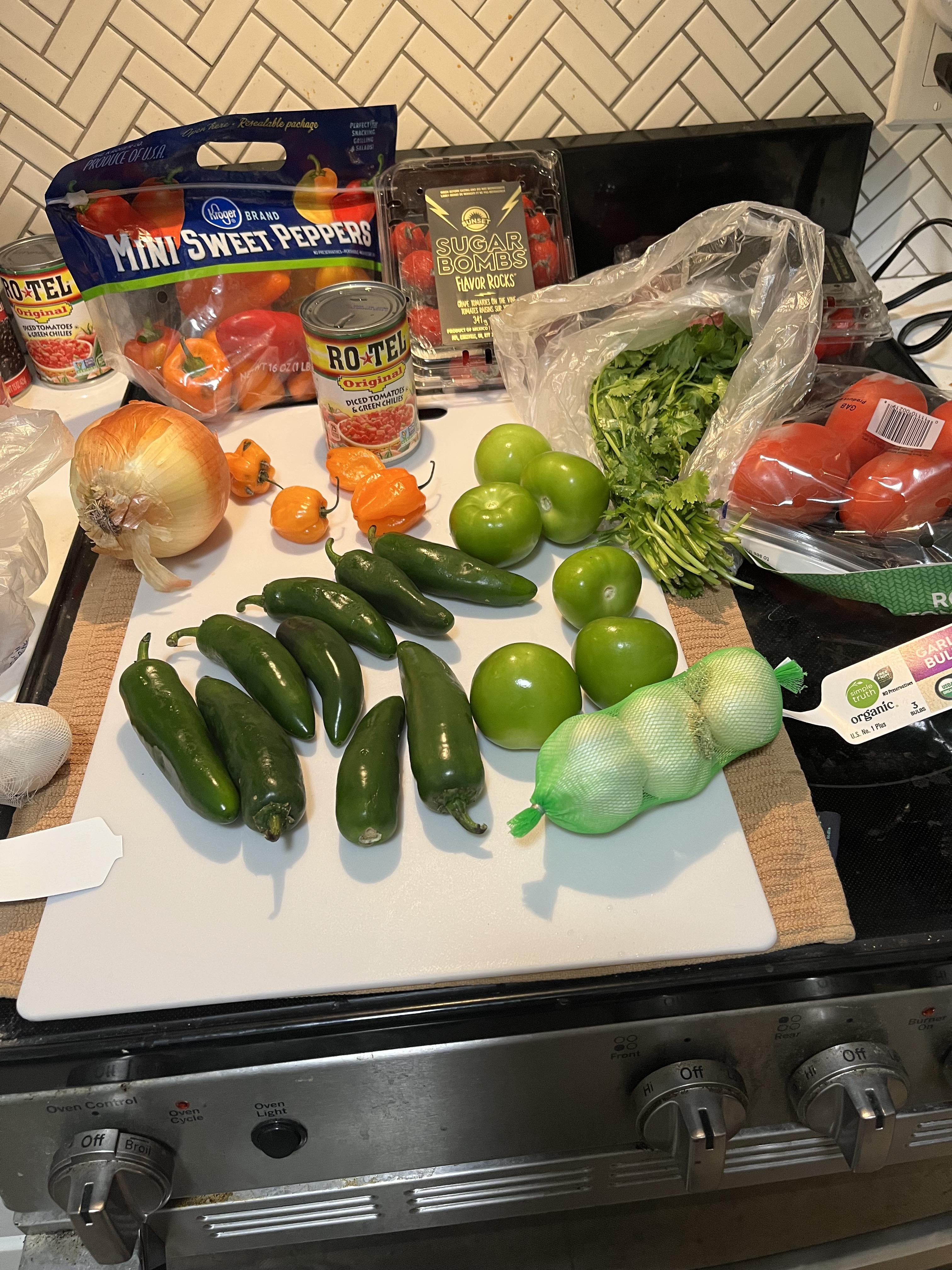 Going to char everything except the cilantro and can of diced tomatoes (😛)